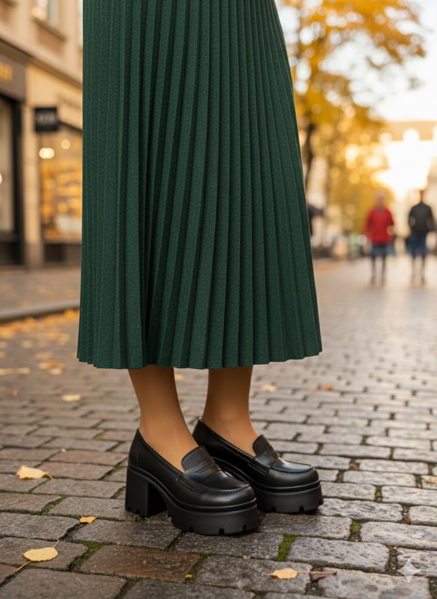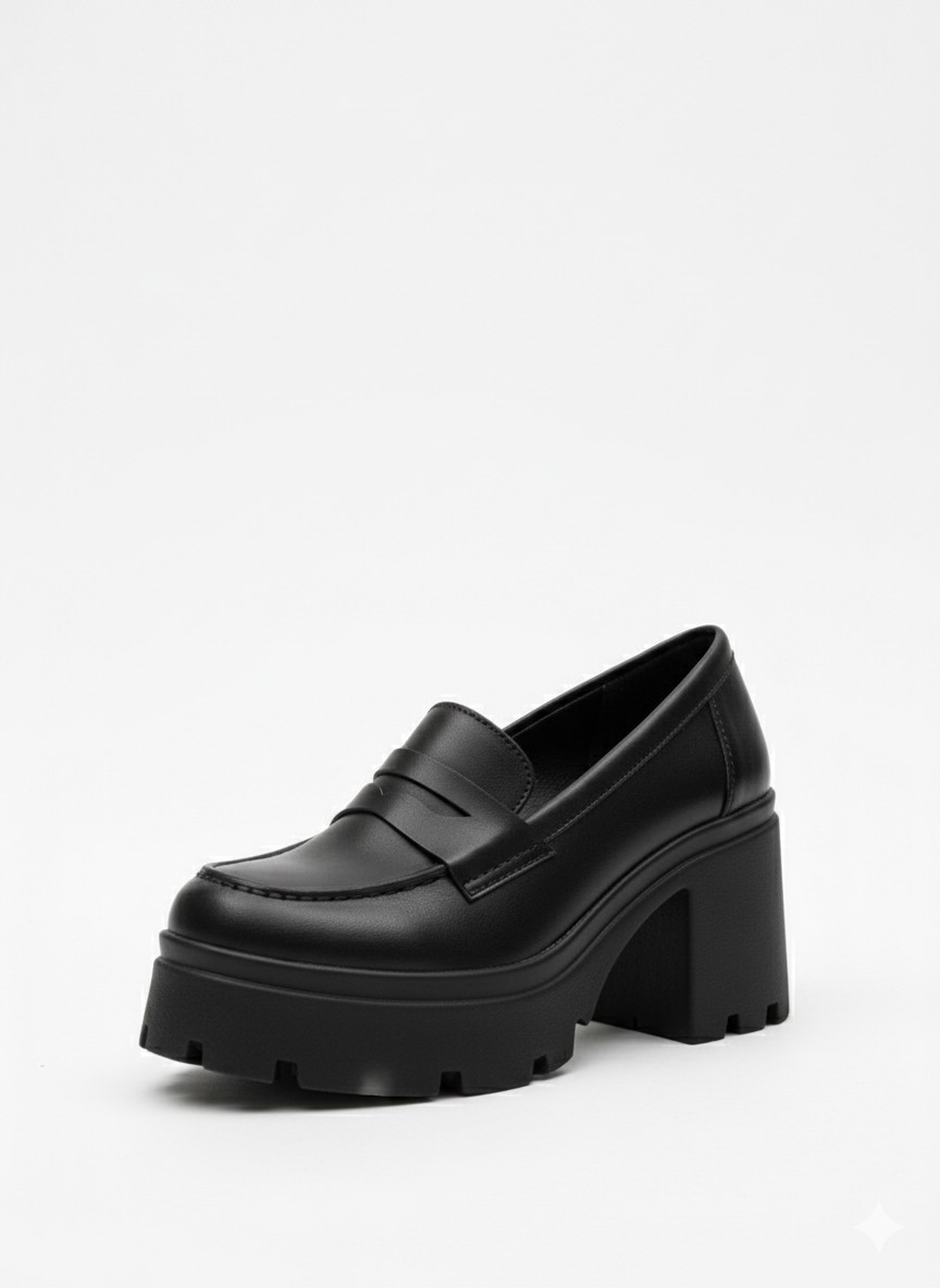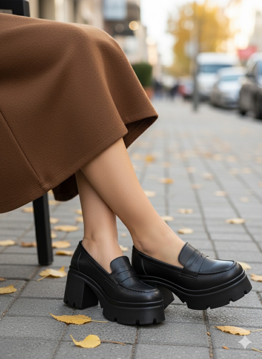 Detaylar: Klasik penny loafer stilinin modern bir yorumu olan bu ayakkabı, kalın ve tırtıklı platform topuk yapısıyla benzersiz bir duruş sergiliyor. Kalın topuğu sayesinde hem şık hem de oldukça rahattır. Yuvarlak burun ve siyah rengi, ayakkabıyı ofis stilinizden günlük kombinlerinize kadar her ortama uyum sağlamasını sağlıyor. Hafif ve dayanıklı malzemesi, uzun süreli kullanım için idealdir. Bu ayakkabı, gardırobunuzun vazgeçilmez temel parçalarından biri olacak.