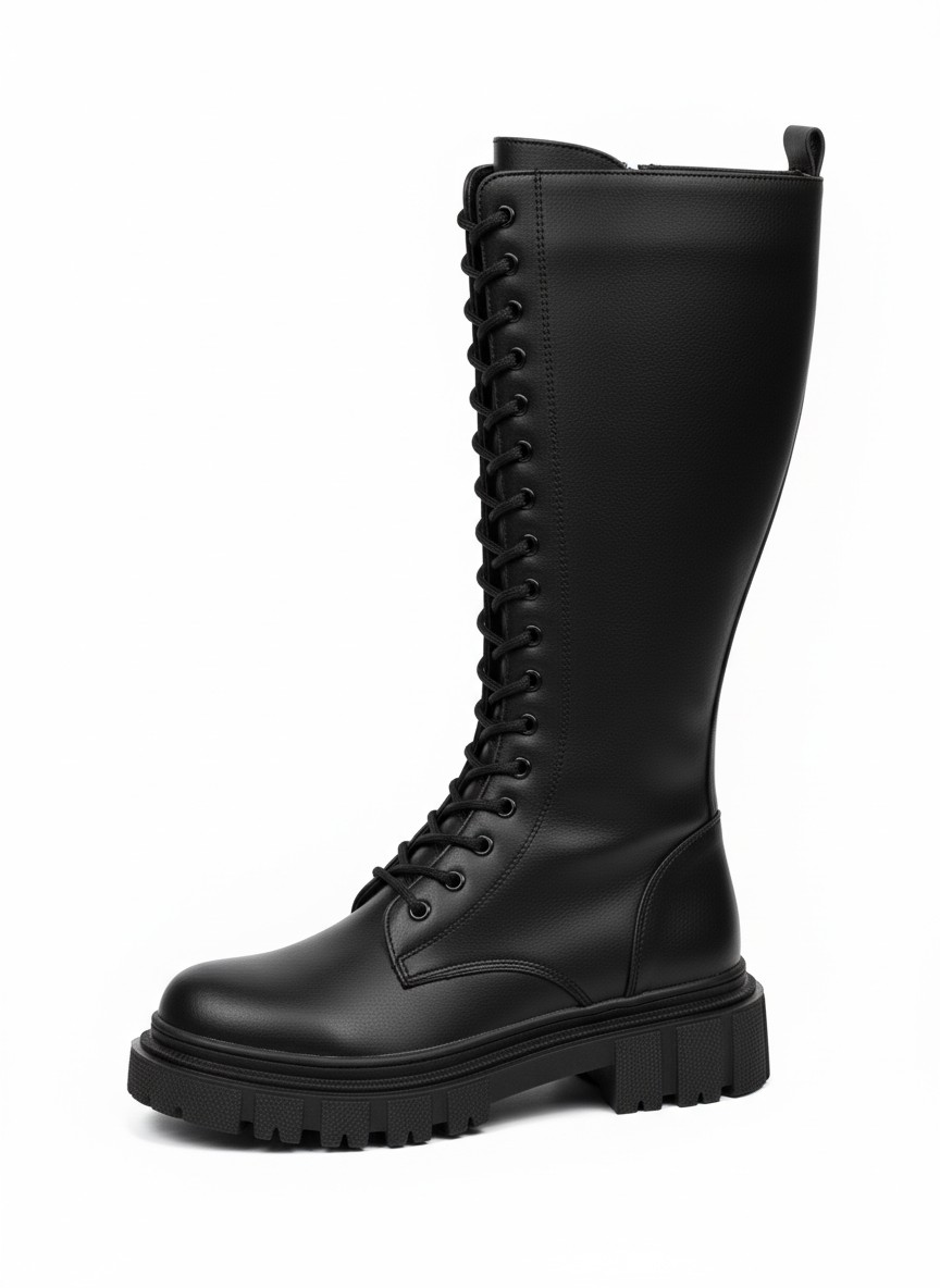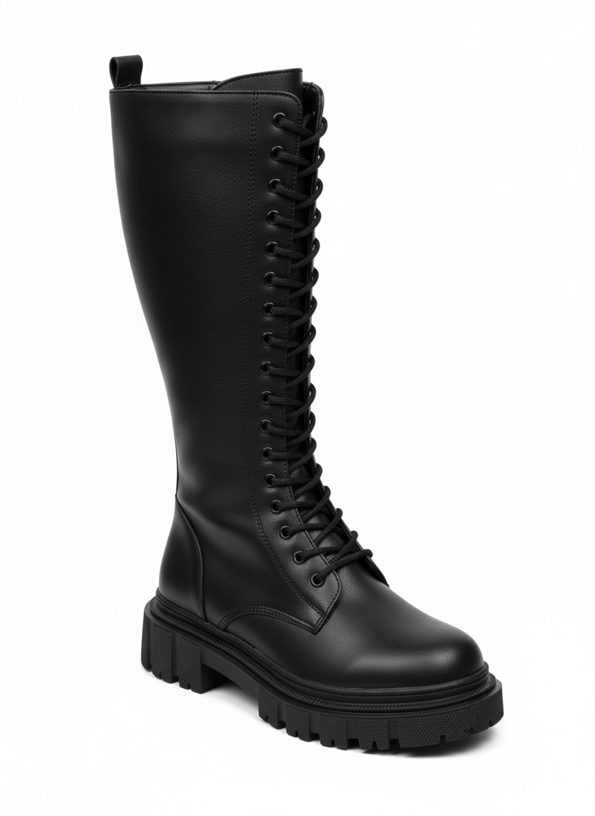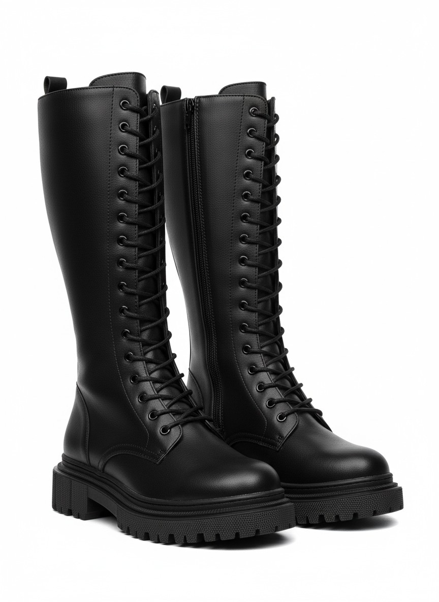 Siyah Diz Altı Bağcıklı Kalın Tabanlı Çizme 690₺ | DGT950