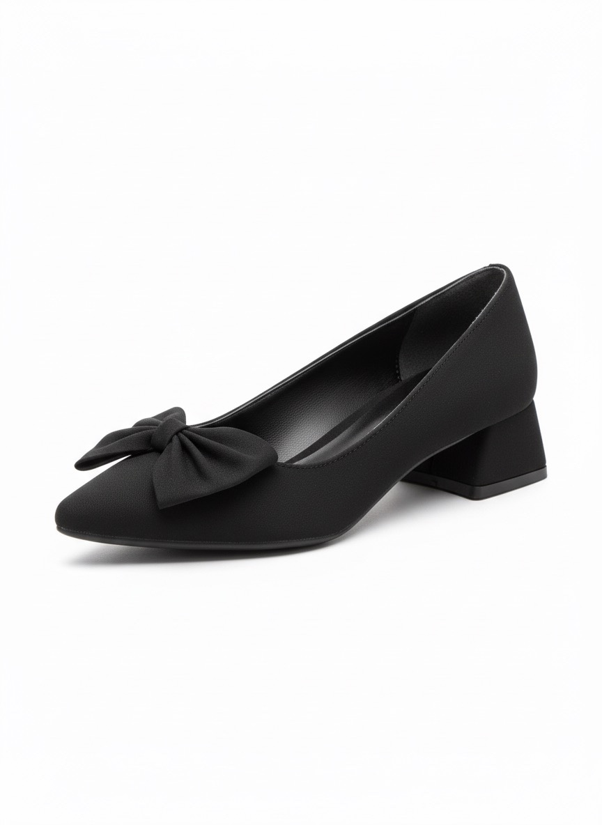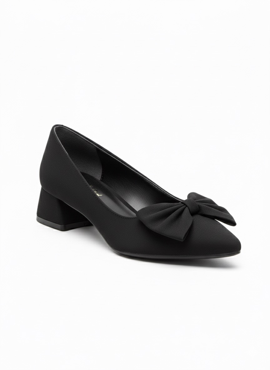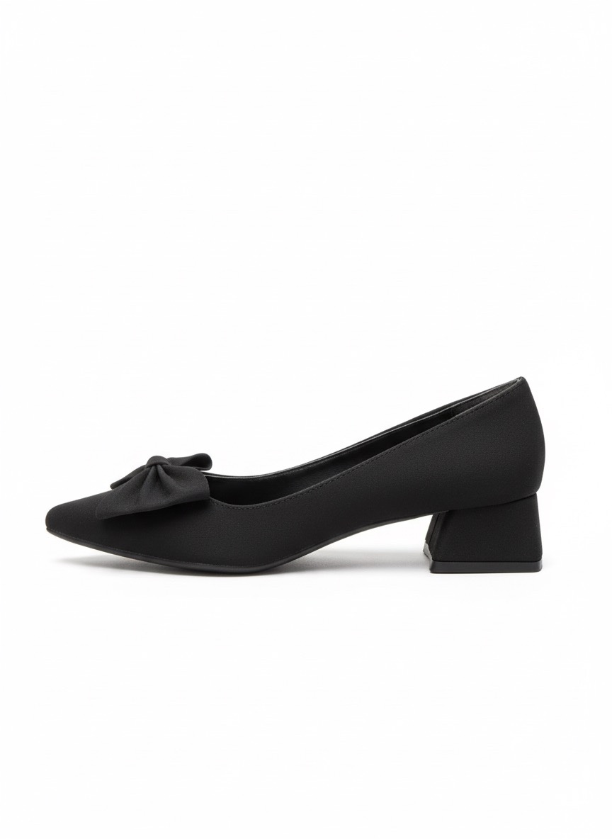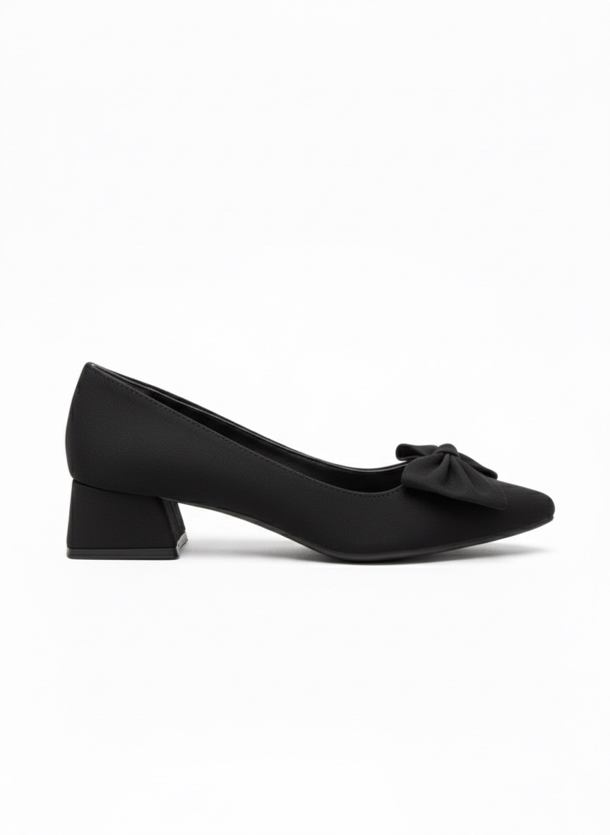 Siyah Fiyonk Detaylı Sivri Burun Alçak Topuklu Ayakkabı 849₺| SFY313