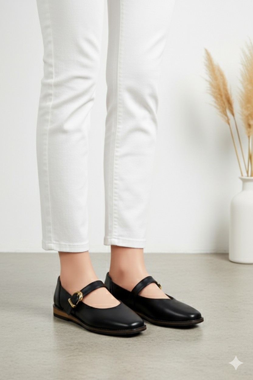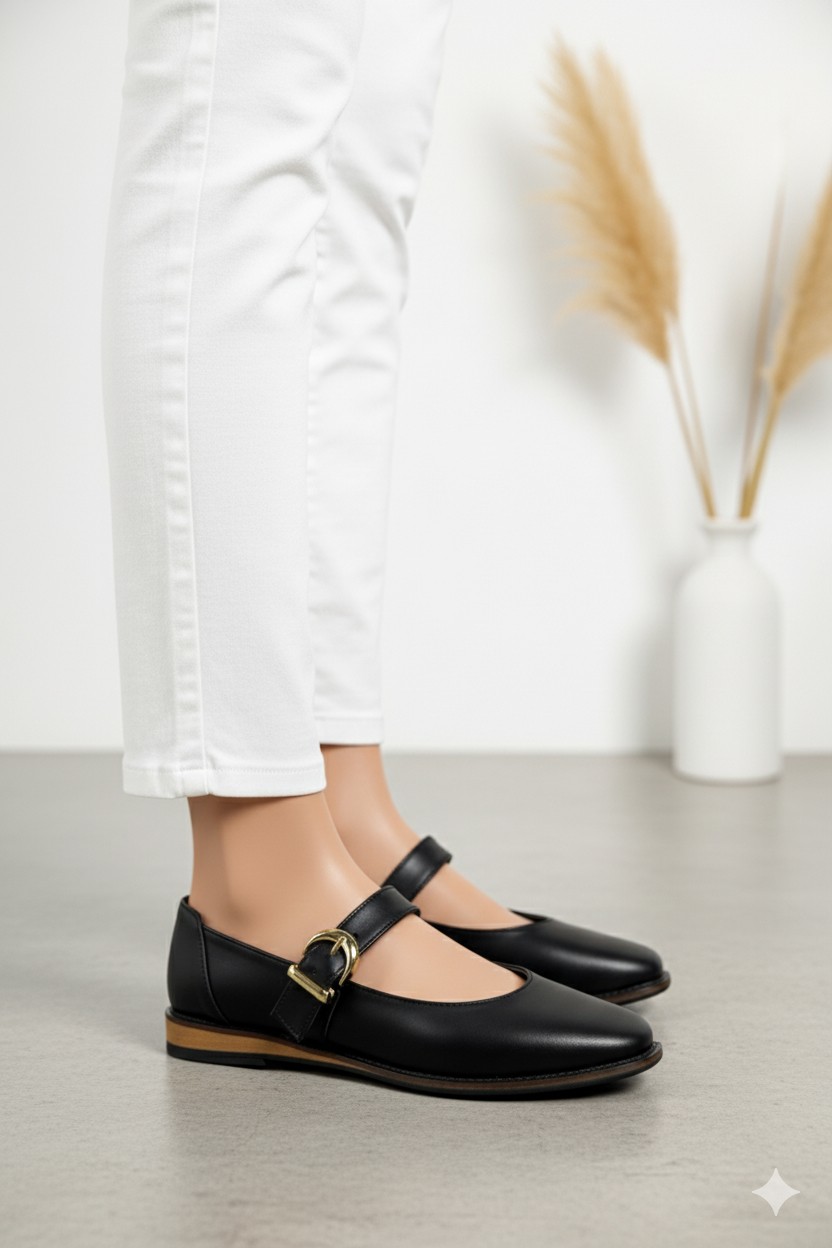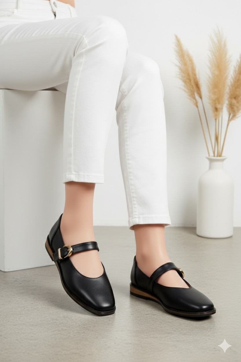 • Altın Tokalı Siyah Kadın Loafer  tipo