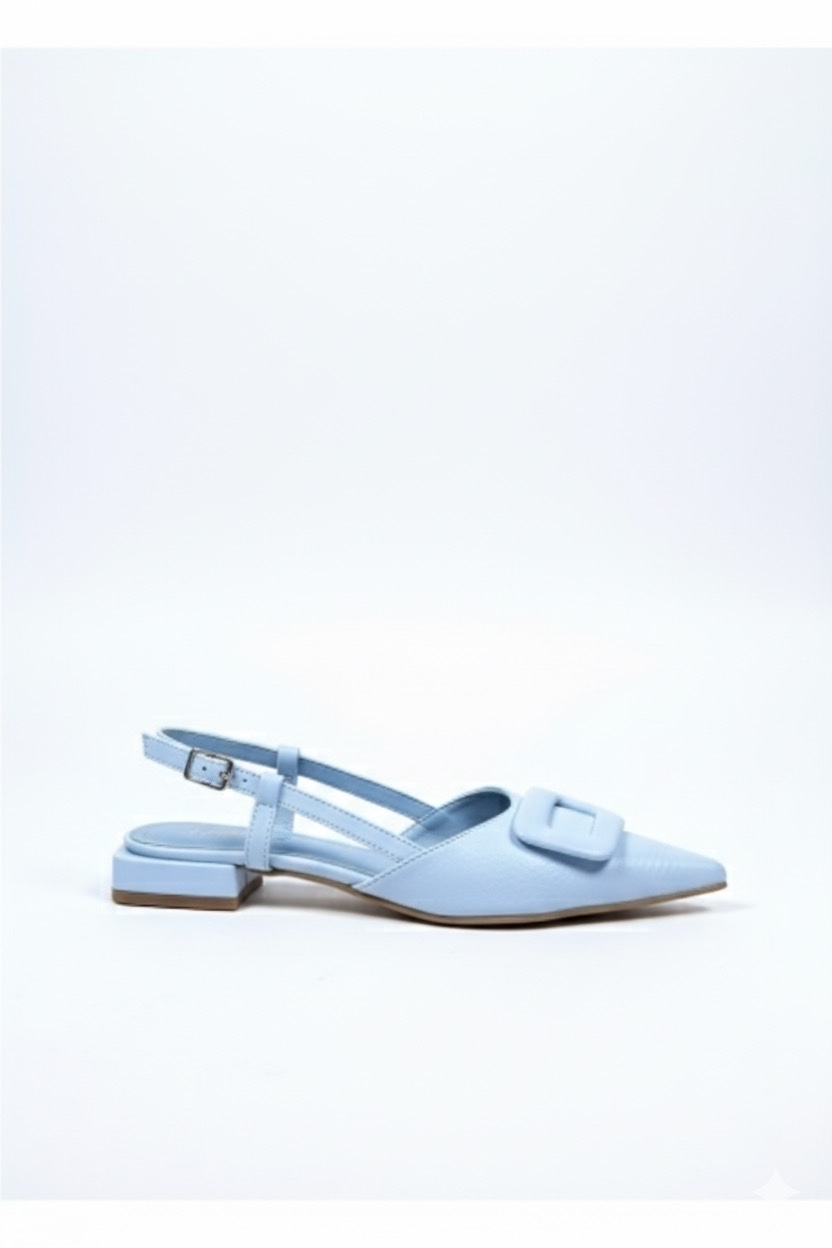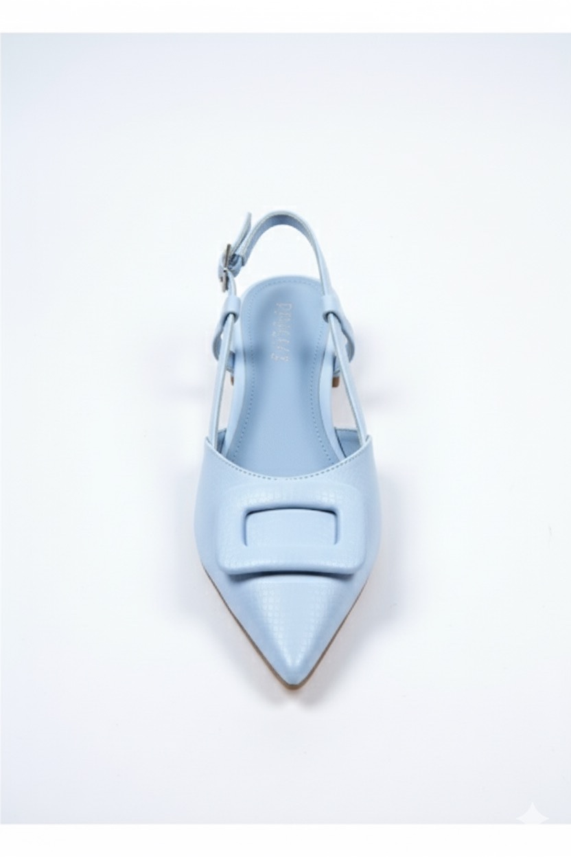 • Bebek Mavisi Toka Detaylı Sivri Burun Alçak Topuklu Ayakkabı Vesa 599₺