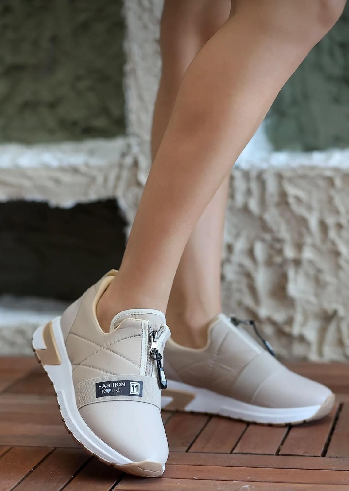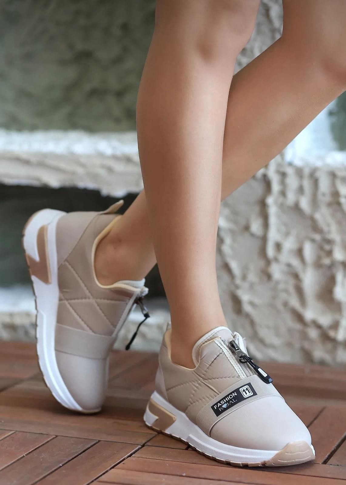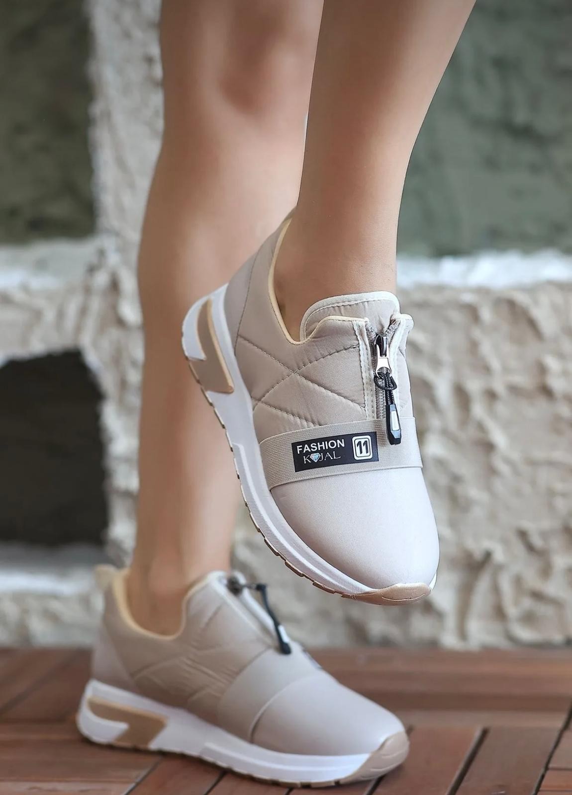 Bej Fermuarlı Kalın Taban Spor Ayakkabı KALO 749₺