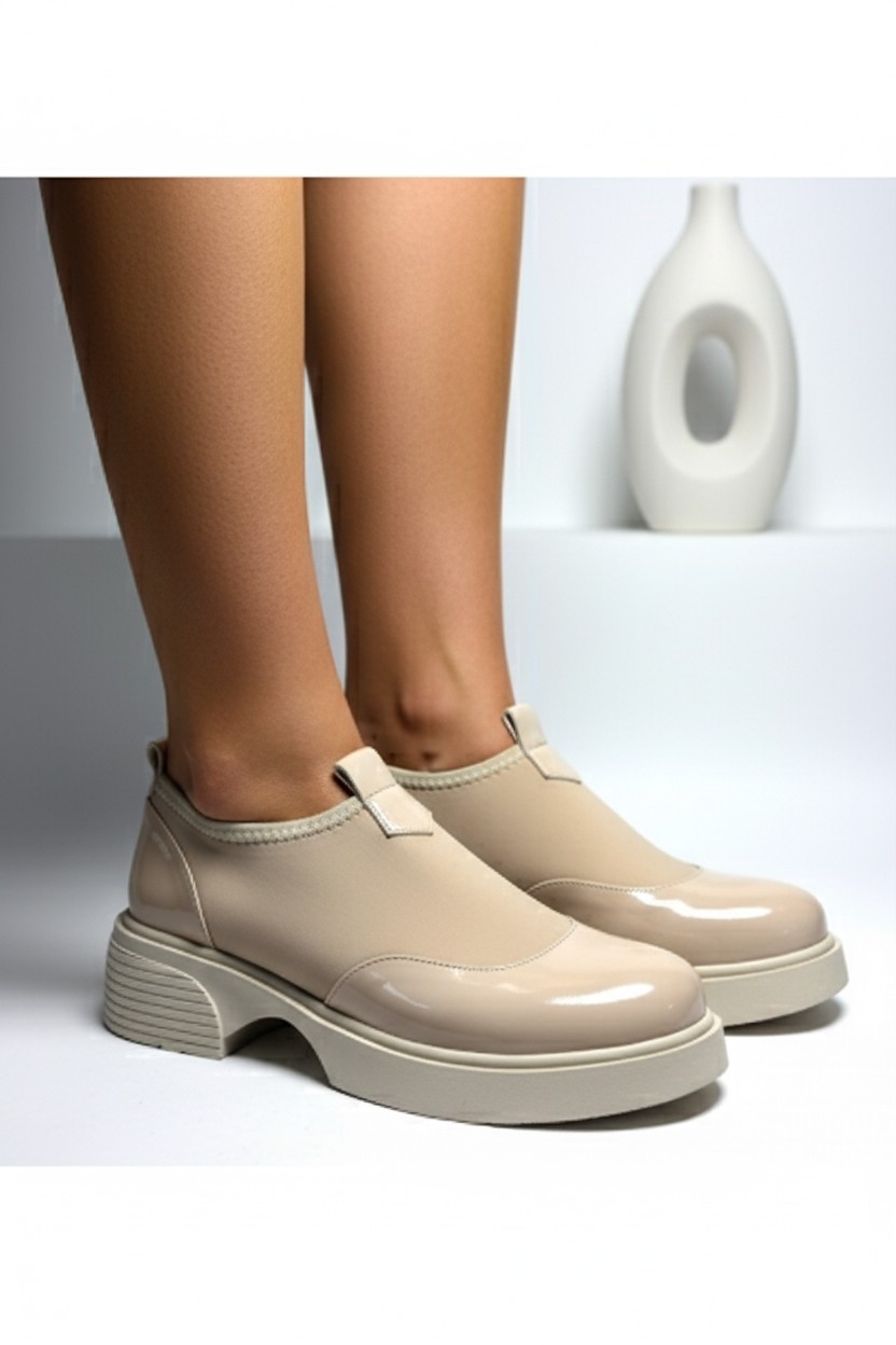 • Bej Parlak Detaylı Kalın Taban Ayakkabı zaro