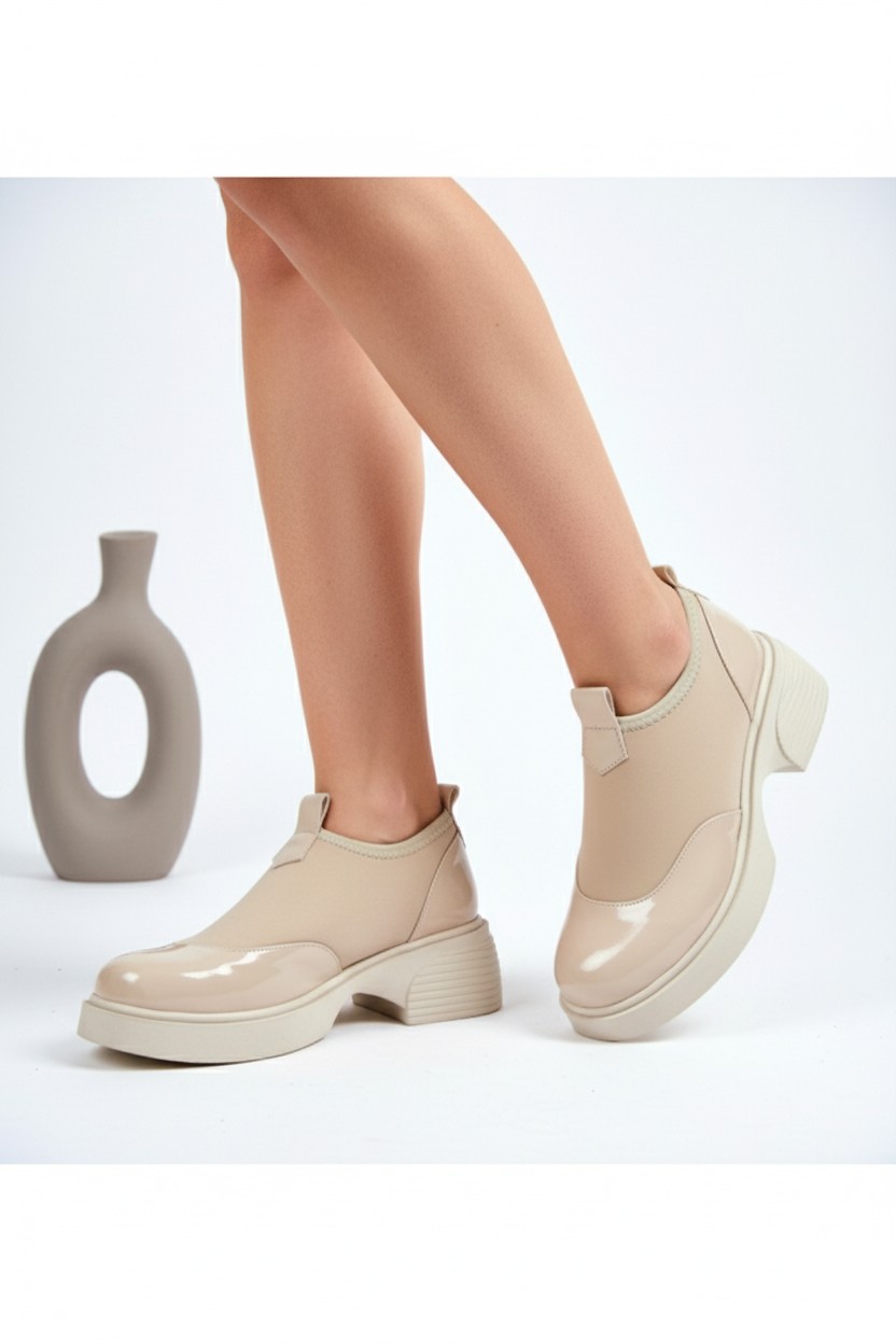 Bej Parlak Detaylı Kalın Taban Ayakkabı zaro