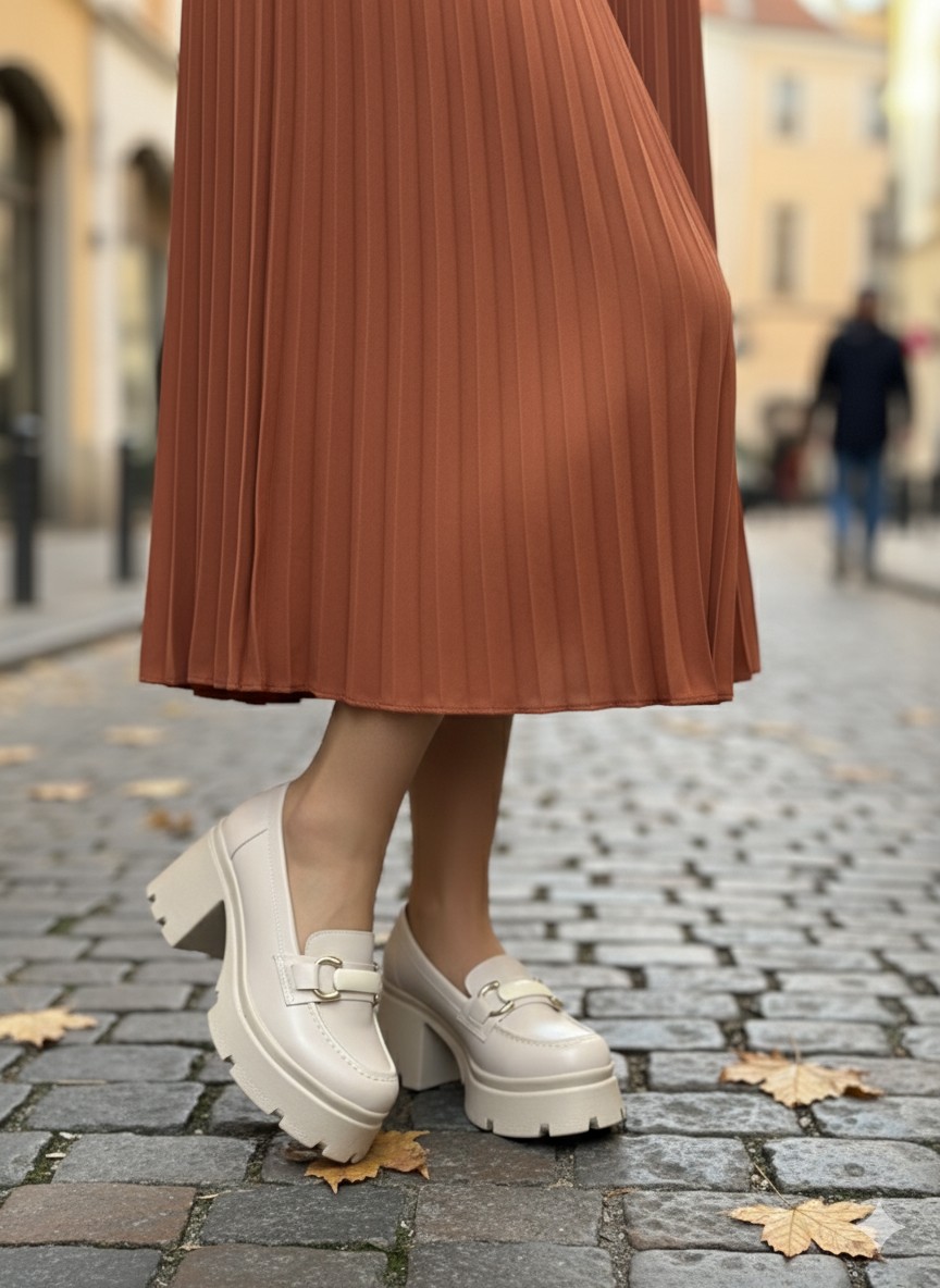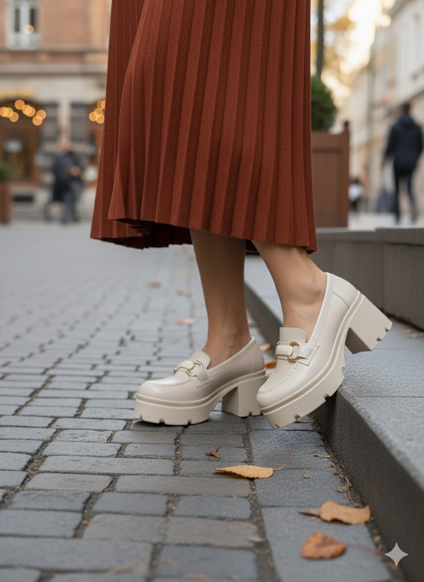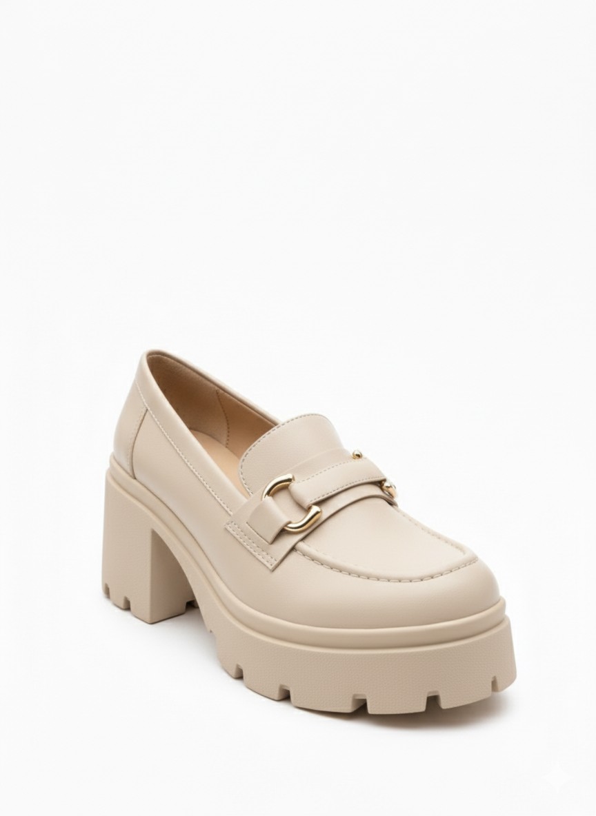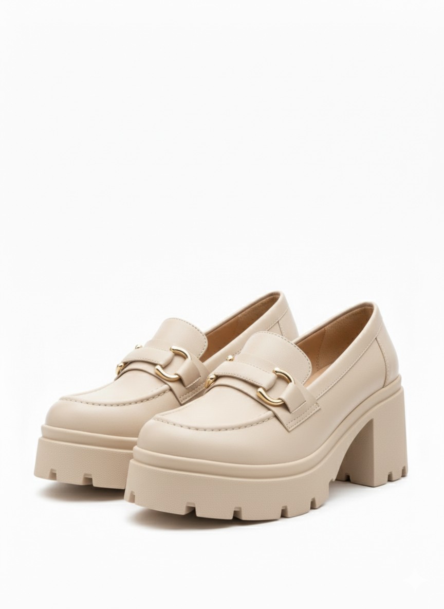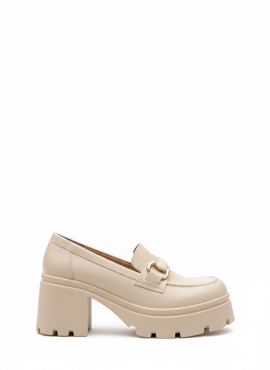 Detaylar: Klasik loafer modeline modern bir dokunuş getiren bu ayakkabı, zarif tokalı detayı ve kalın platform topuğu ile öne çıkıyor. Gün boyu konfor sağlayan tırtıklı taban yapısı ve yuvarlak burun tasarımı sayesinde hem şık hem de rahat bir kullanım sunar. Ayakkabının sade ve şık bej rengi, farklı renk ve desenlerdeki kıyafetlerinizle kolayca uyum sağlar. Bu ayakkabı, hem klasik hem de gündelik kombinleriniz için ideal bir tamamlayıcıdır.
