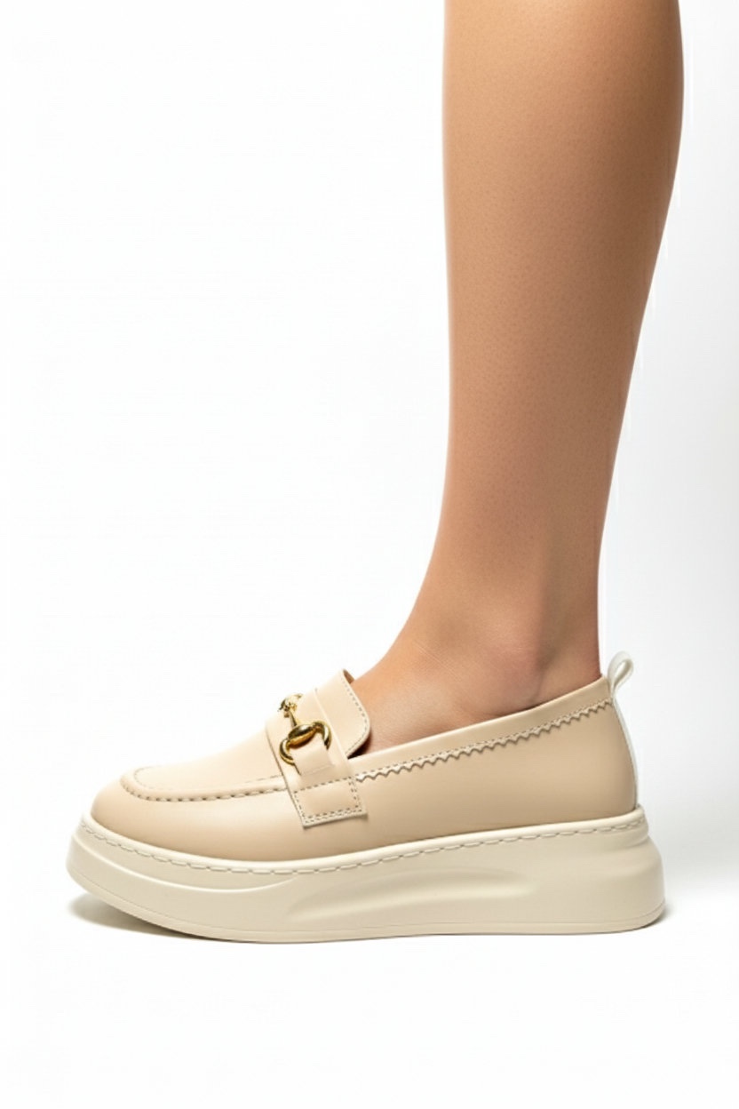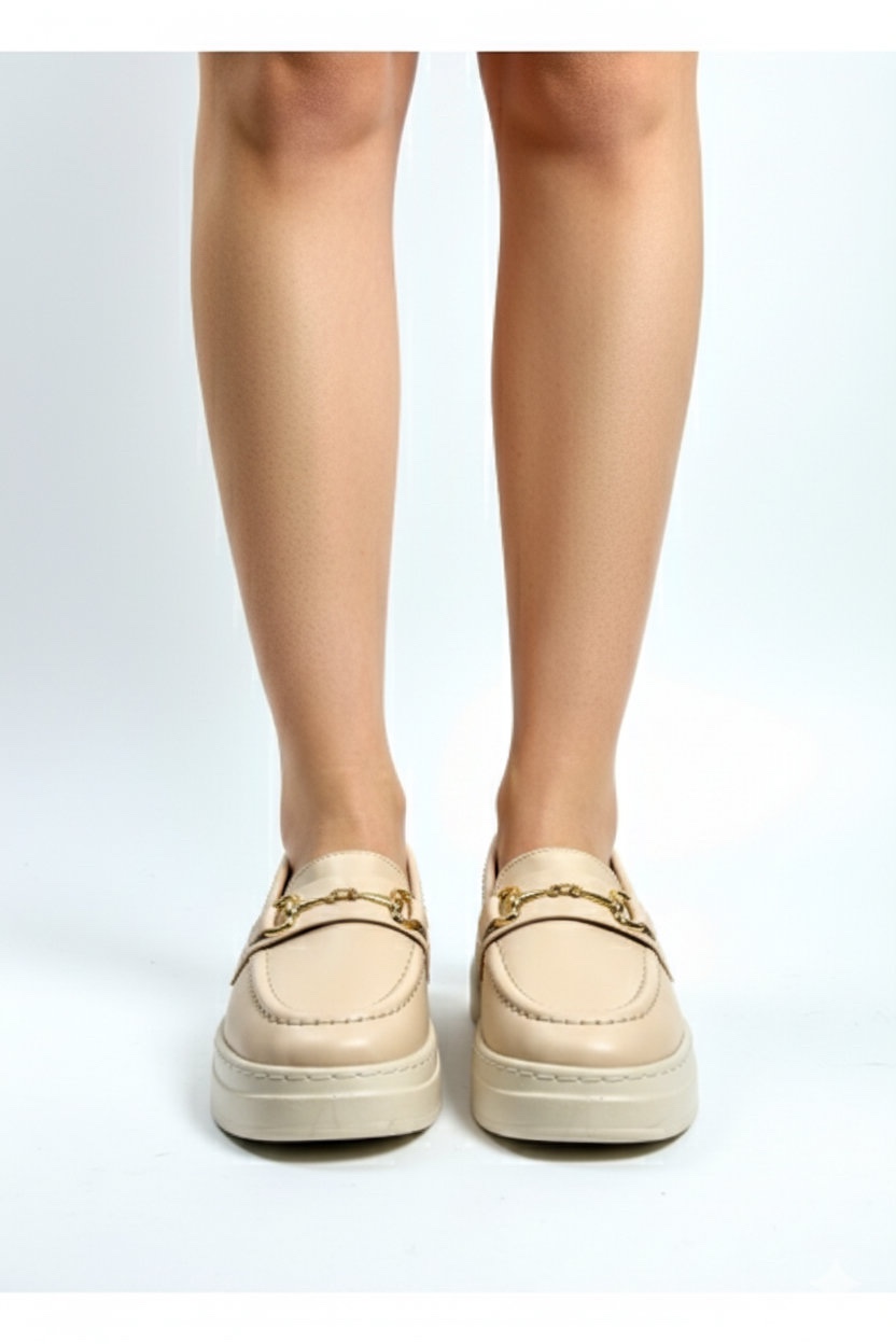 Bej Zincir Detaylı Kalın Taban Loafer Bera