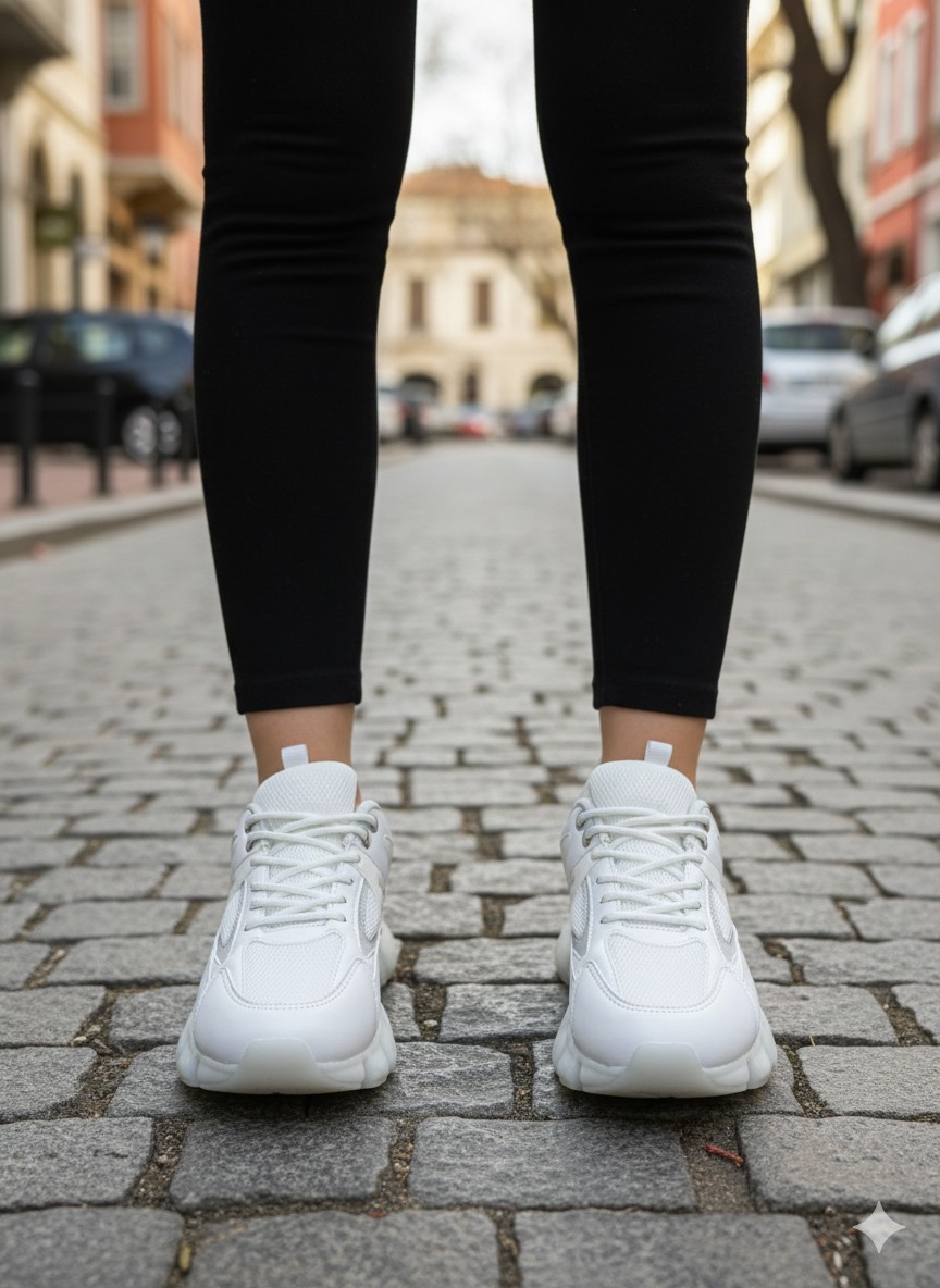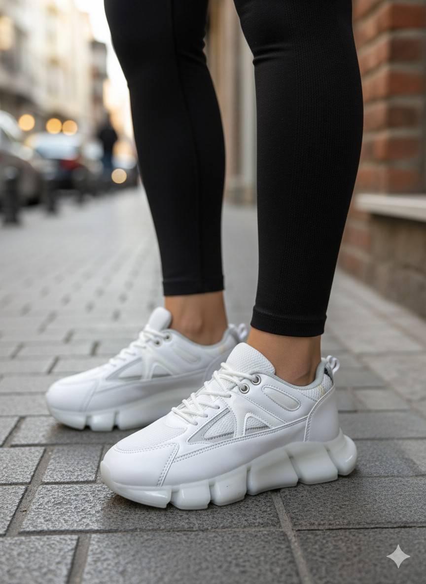 • Beyaz Bağcıklı Kalın Taban Spor Ayakkabı 699₺ flet