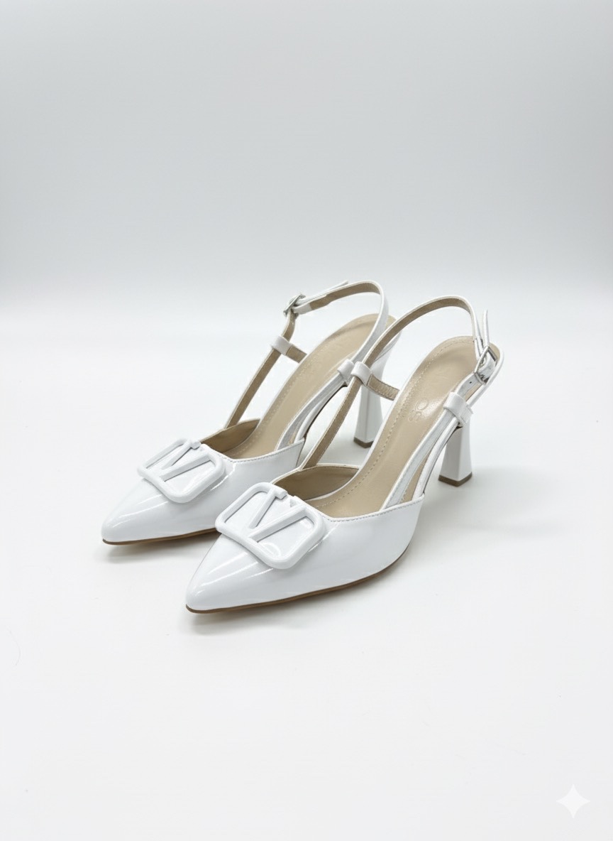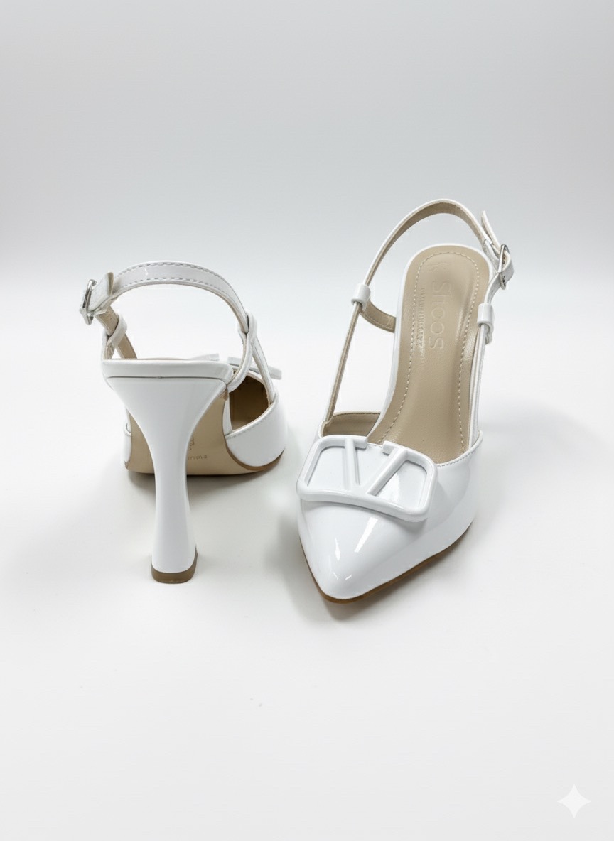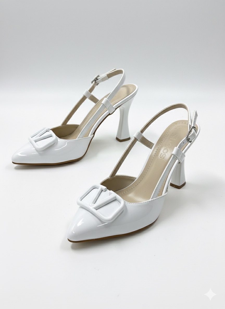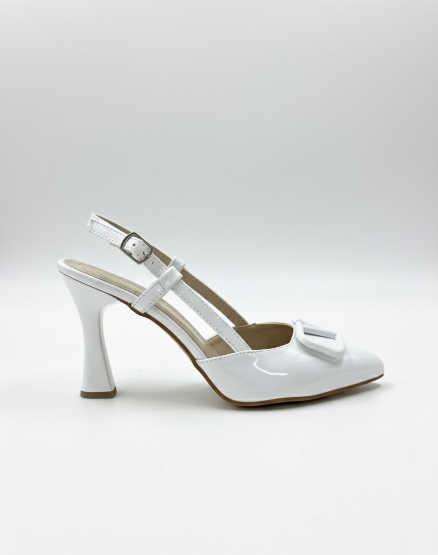 • Beyaz Rugan Aksesuarlı İnce Topuklu Ayakkabı - SEZAB 599₺