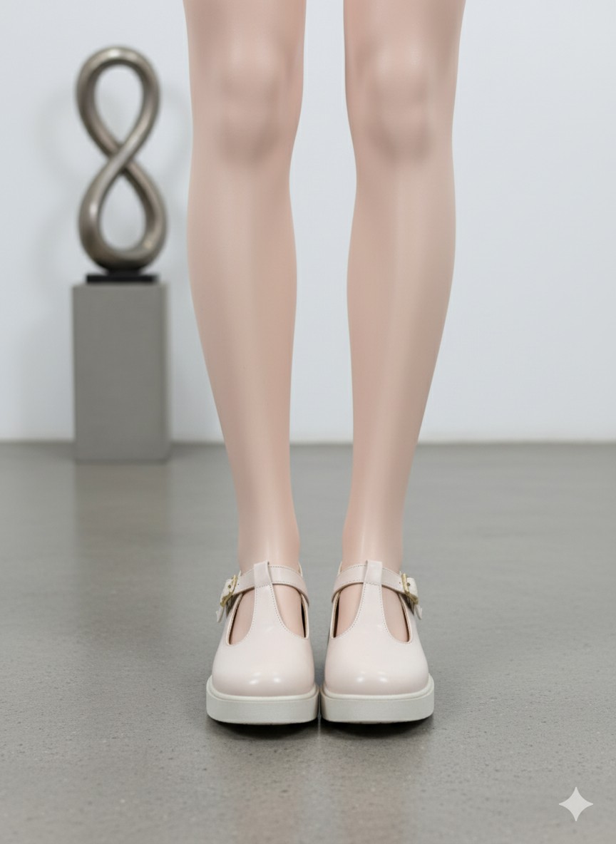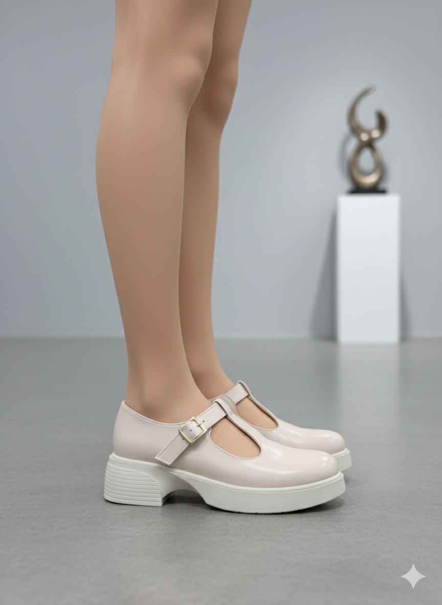 Ekru Bağcıklı Kalın Taban Ayakkabı - VEYSEP