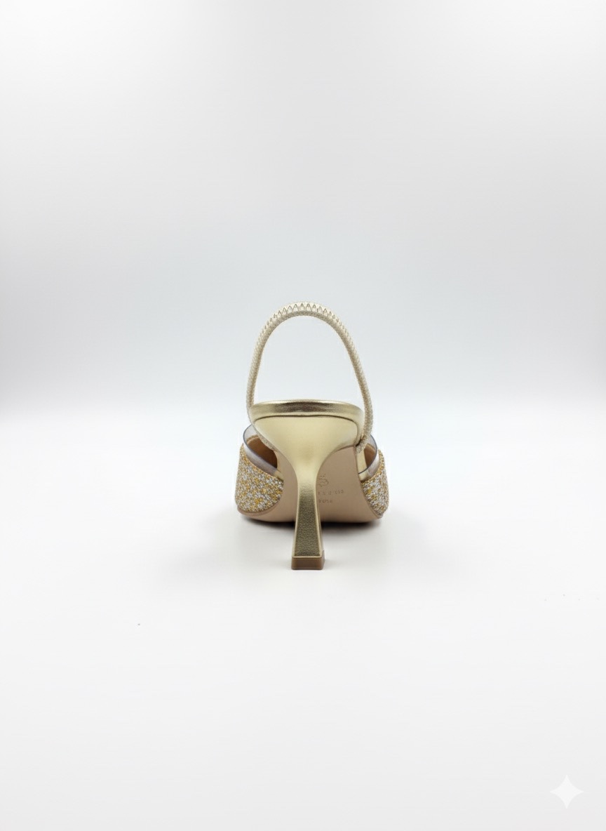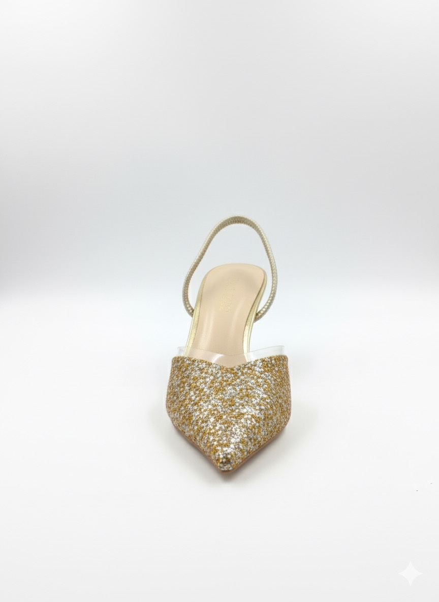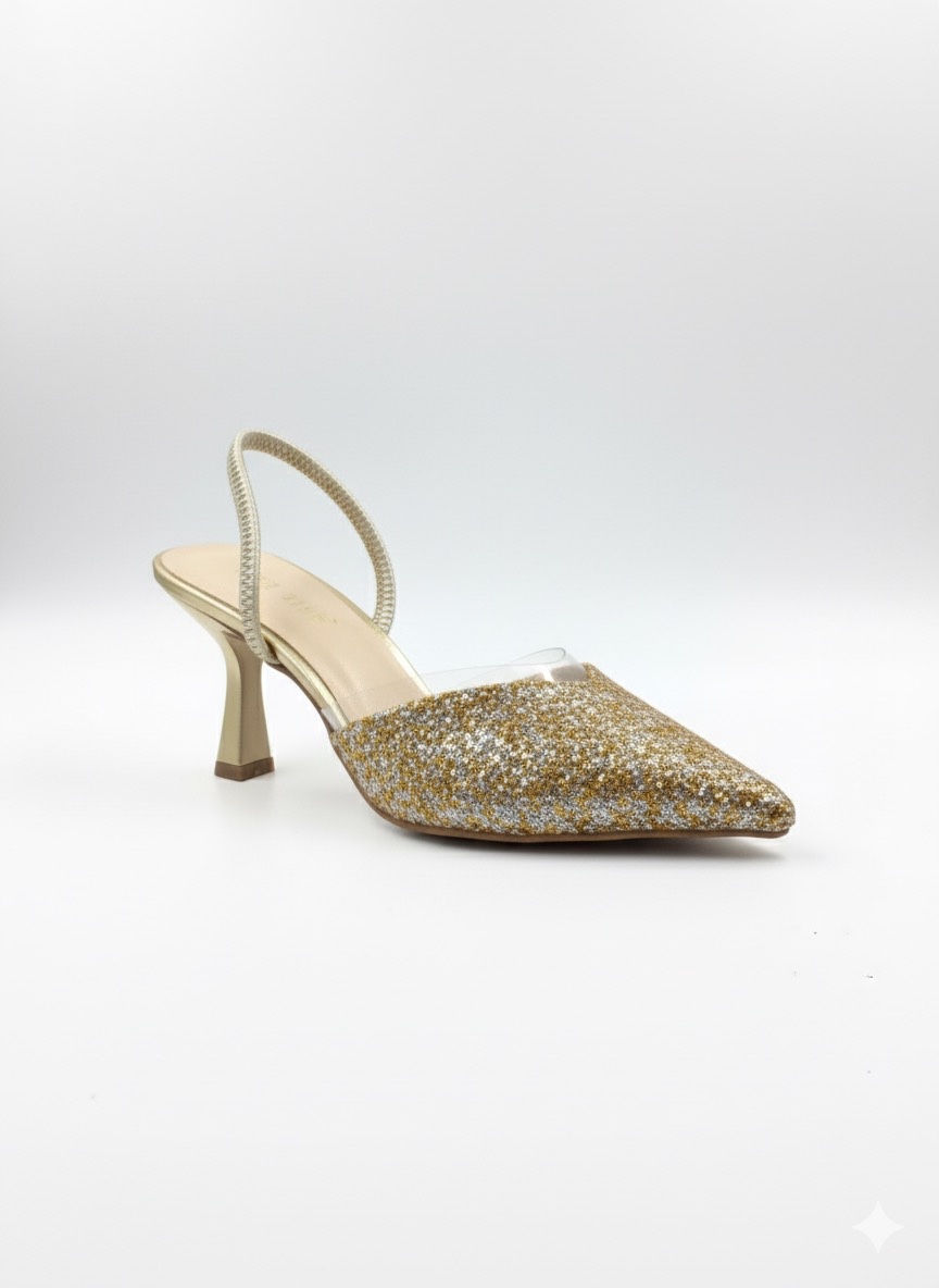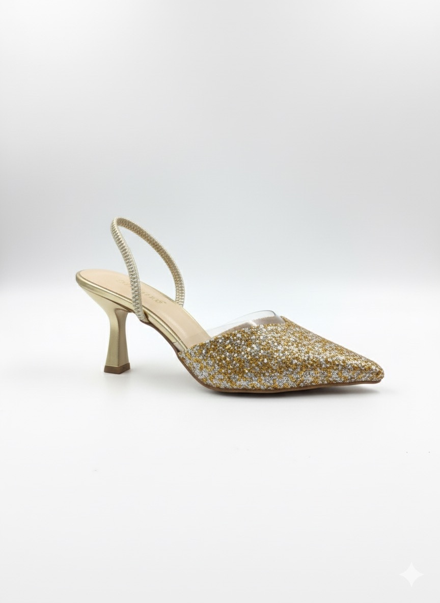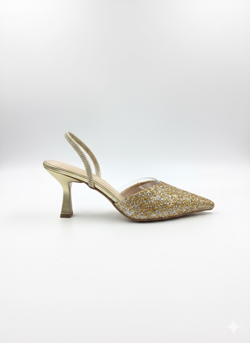 Bu ışıltılı gold terlik, özel gün ve geceler için idealdir. Kombinlerinize anında parlak ve göz alıcı bir hava katar:
