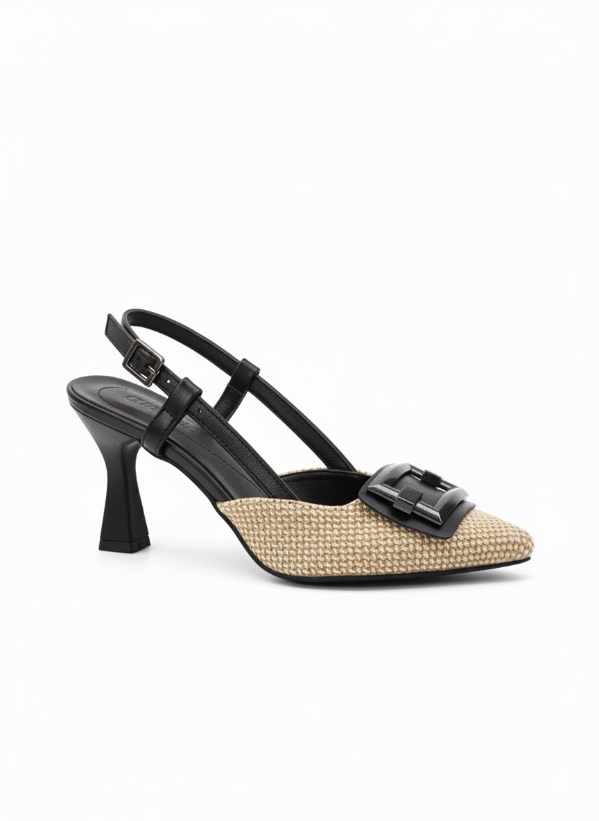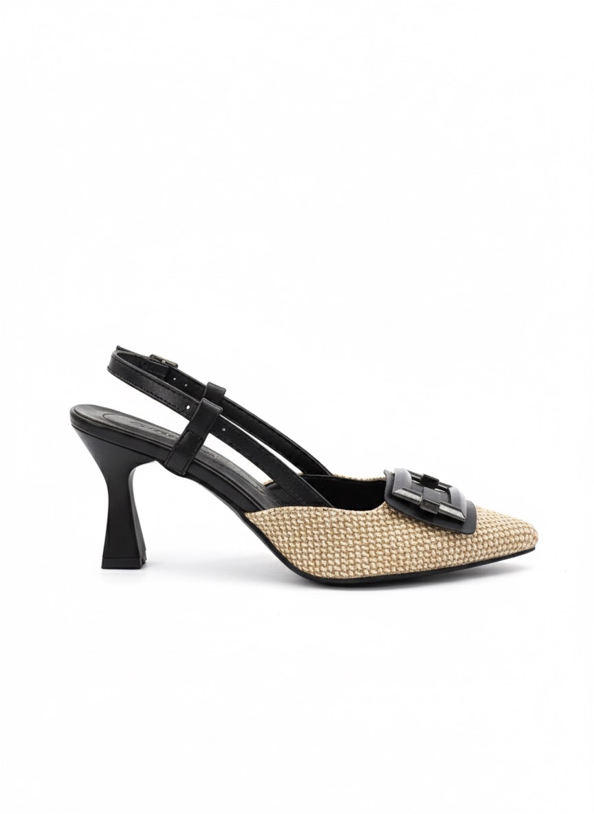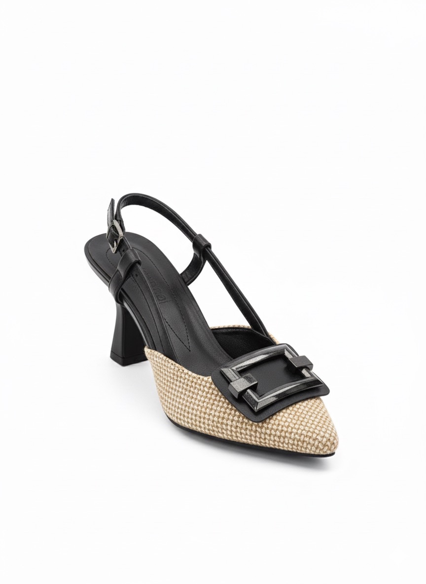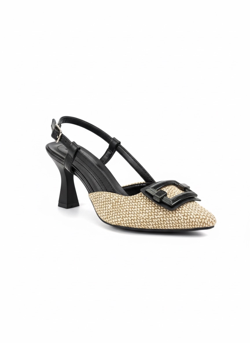 • Hasır Detaylı Siyah Bantlı Topuklu Ayakkabı - LIZEEX 599₺