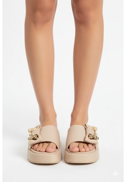 * Materyal: Dışı parlak, altın rengi suni deri. İç astarı ve tabanlığı, rahat bir kullanım için yumuşak bir materyalden yapılmıştır.