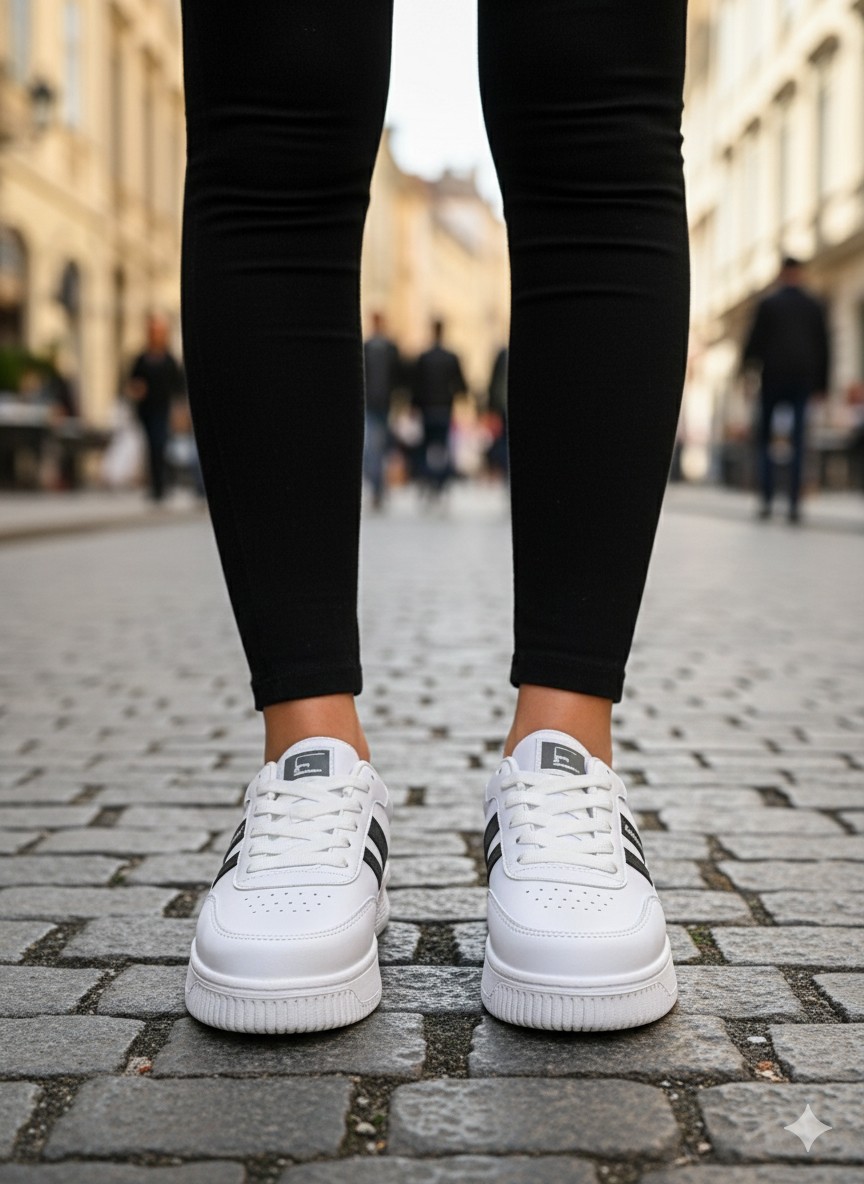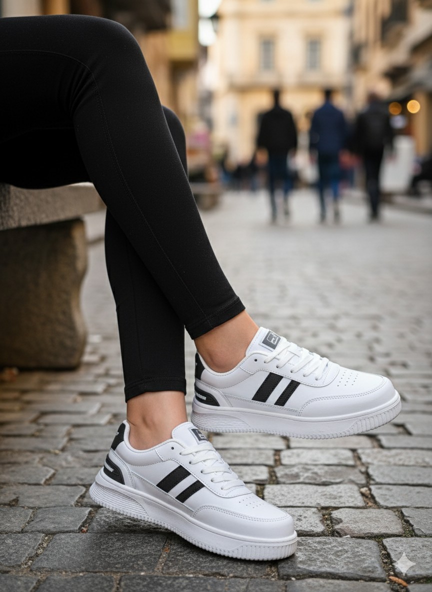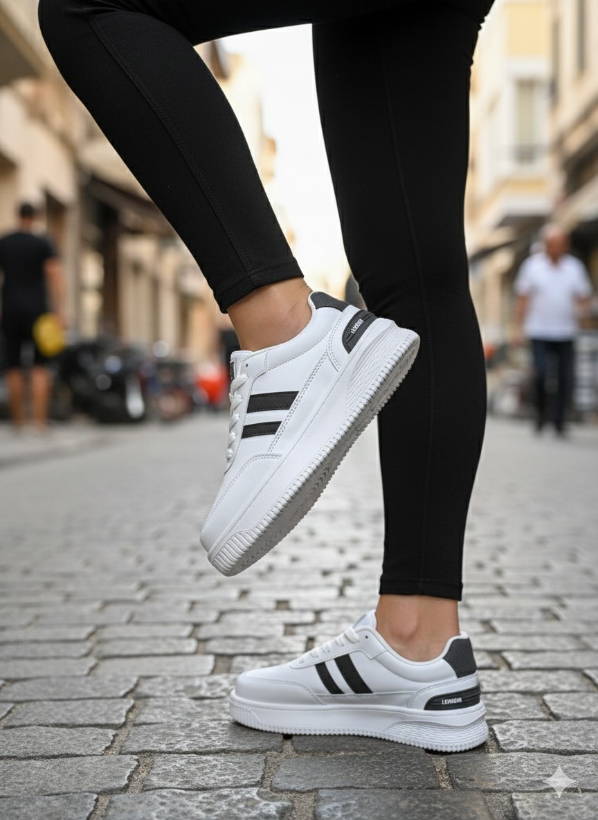 • Detaylar: Bu modern spor ayakkabı, yan kısımdaki siyah şerit detaylarıyla klasik bir duruş sergiler. Kalın ve yükseltilmiş tabanı, hem konforlu bir kullanım hem de şık bir görünüm sağlar. Bağcıklı yapısı sayesinde ayağınıza tam oturur.
