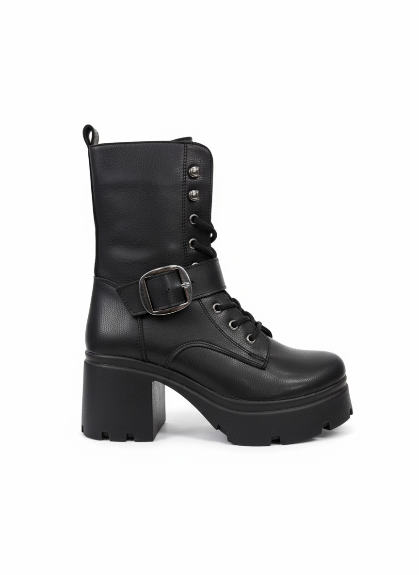 Siyah Tokalı Bağcıklı Kalın Topuklu Combat Bot 1090₺| BLC875