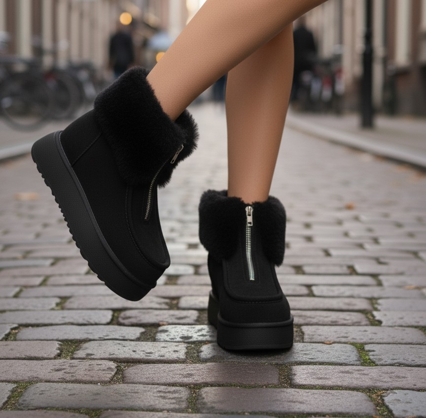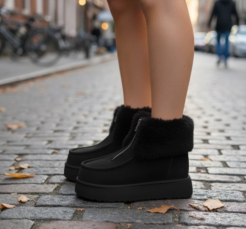 • Siyah Kürklü Kalın Platform Tabanlı Fermuarlı Mini Bot 1290₺ | KPT545