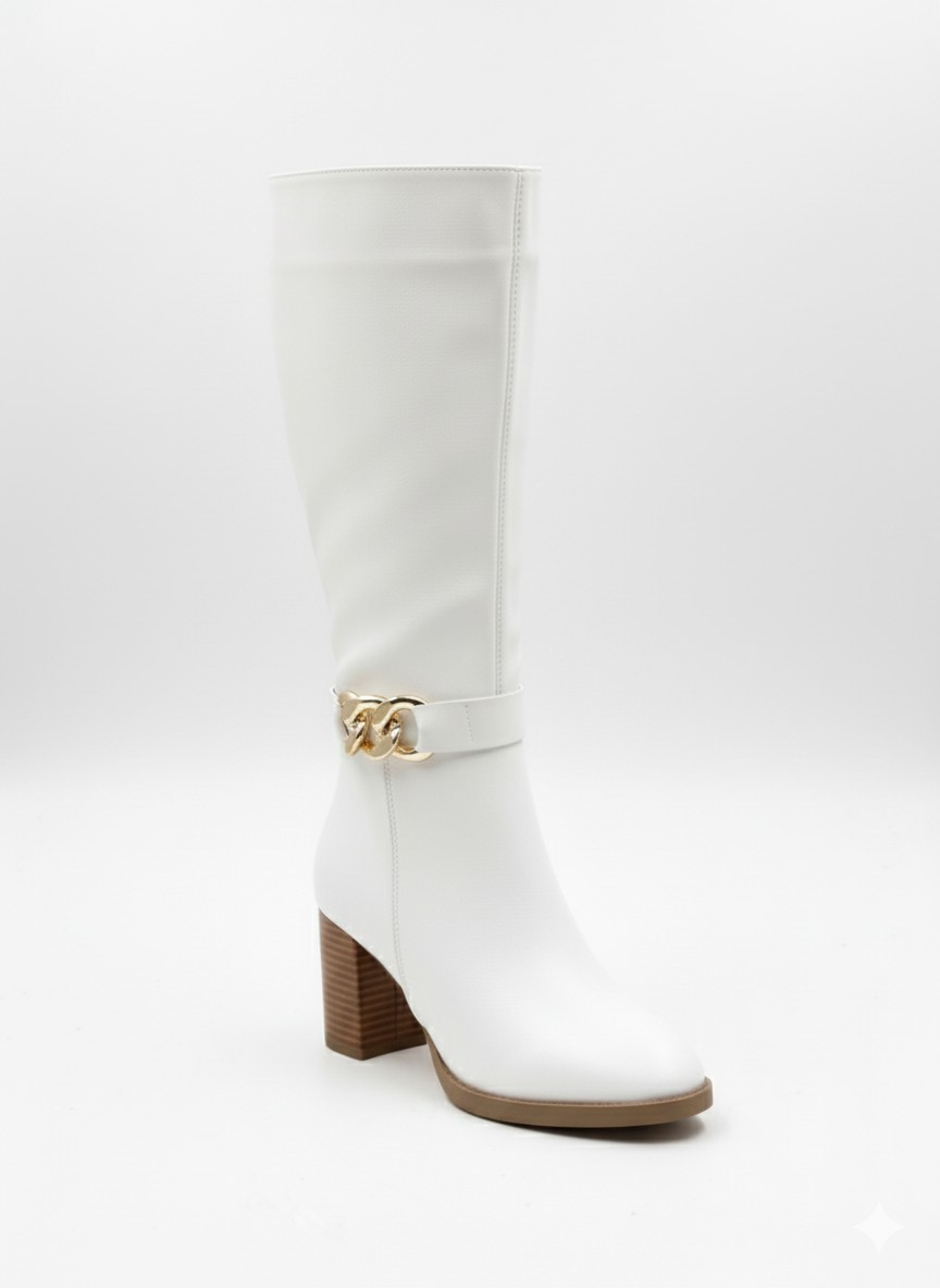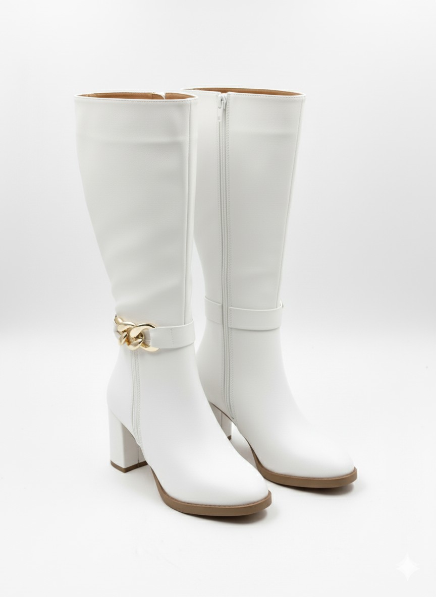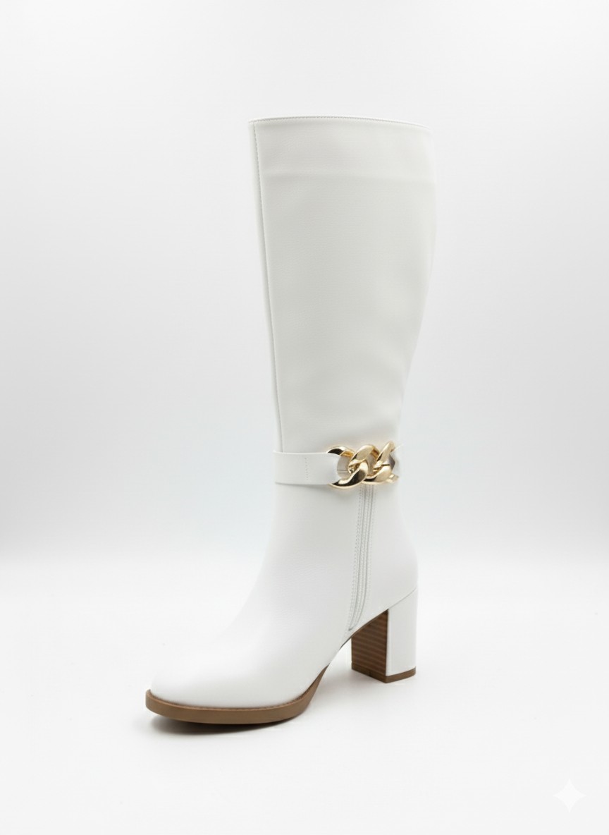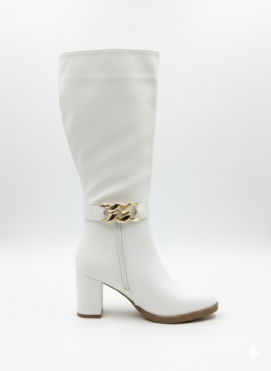 Beyaz Zincir Detaylı Klasik Uzun Topuklu Çizme 890₺ | BZD404