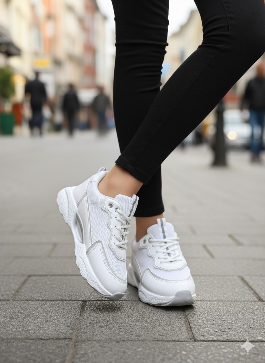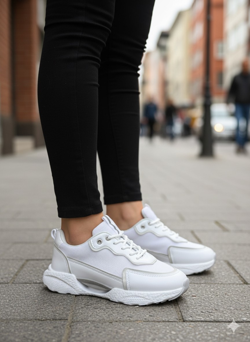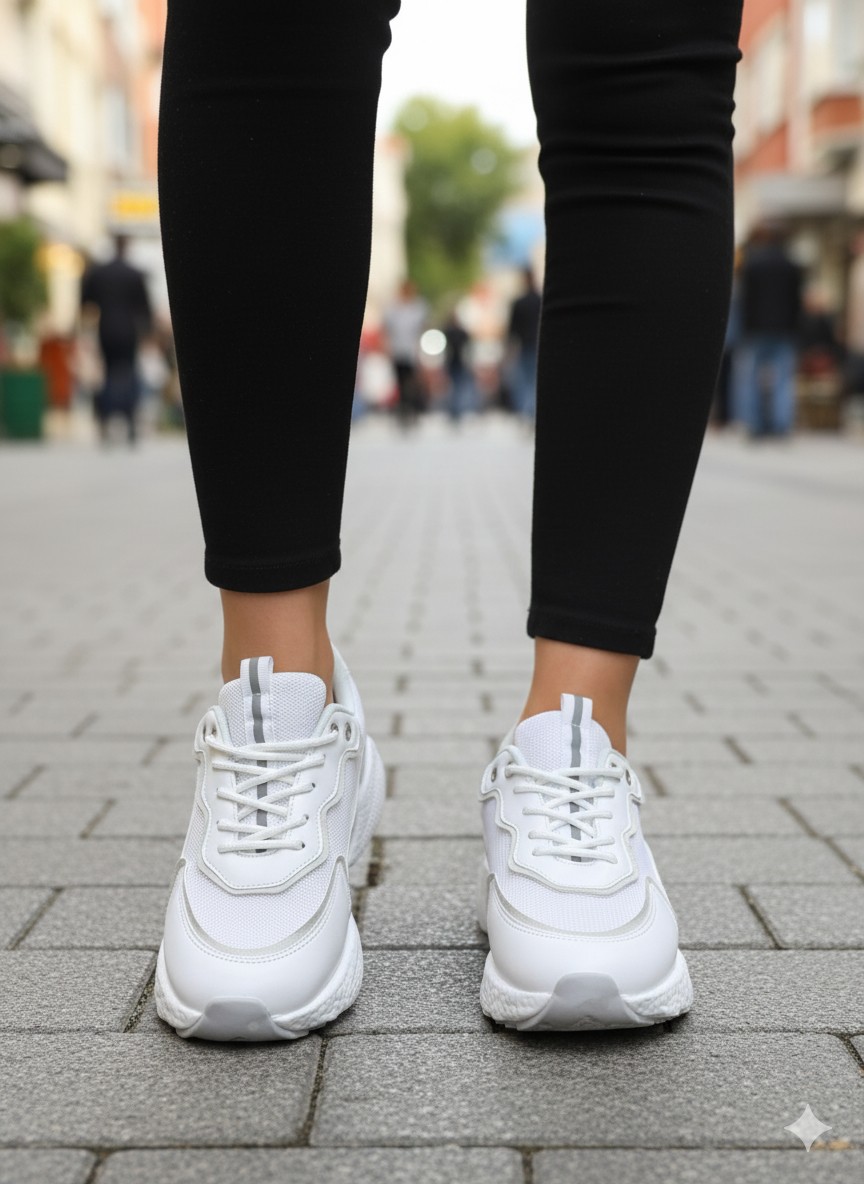 Detaylar: Beyazın zarafetiyle tasarlanmış bu spor ayakkabı, file detaylarıyla nefes alabilirlik sağlarken, özel hava taban teknolojisiyle gün boyu konfor sunar.