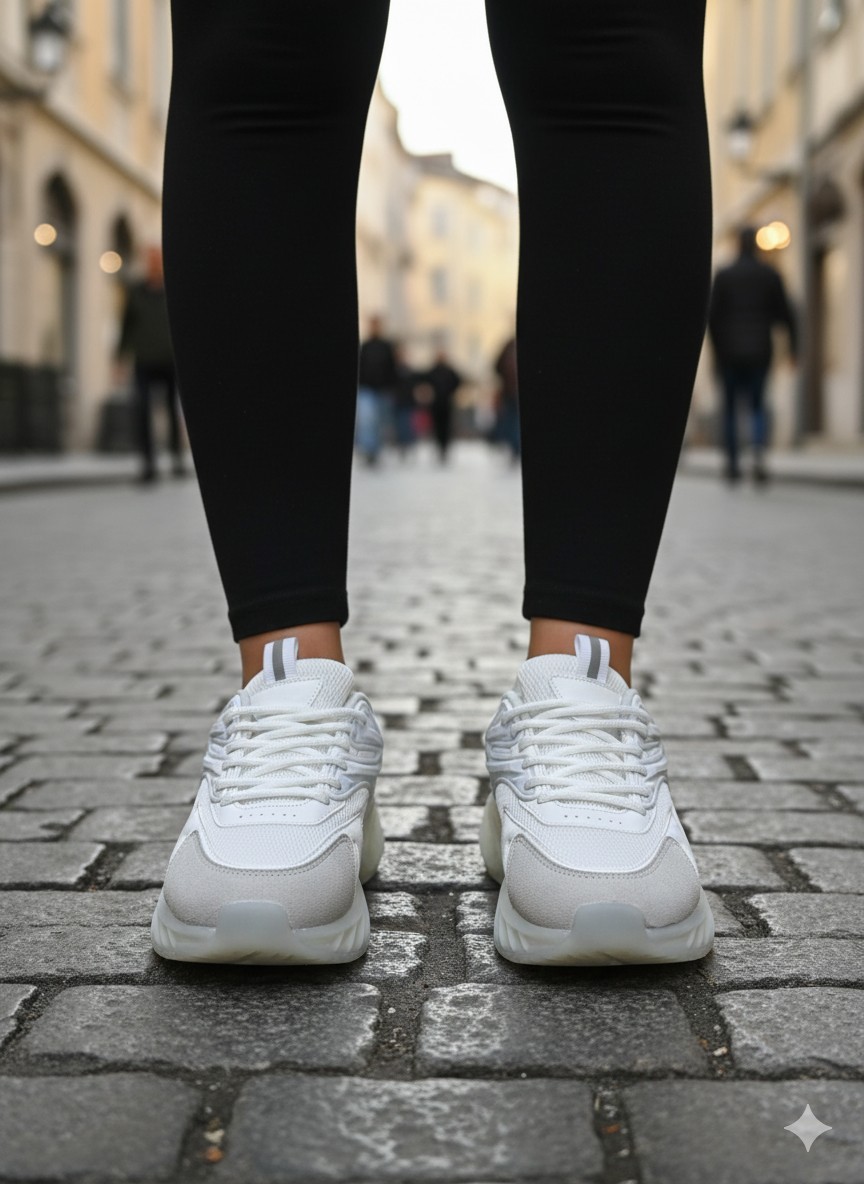 Detaylar: Bağcıklı ve dikiş detaylı tasarım, şeffaf ve kalın taban yapısı. Beyaz rengiyle her kombine kolayca uyum sağlar ve modern bir duruş sergiler.