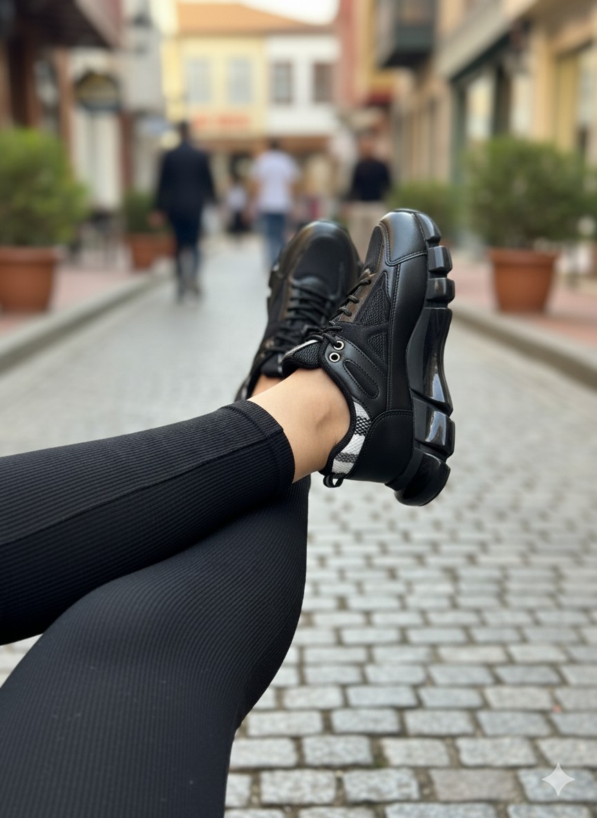 Siyah Transparan Detaylı Kalın Taban Spor Ayakkabı 699₺ flet