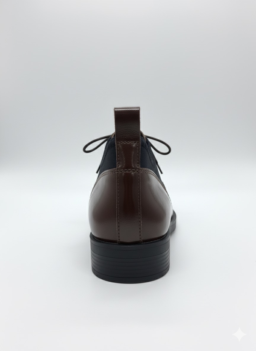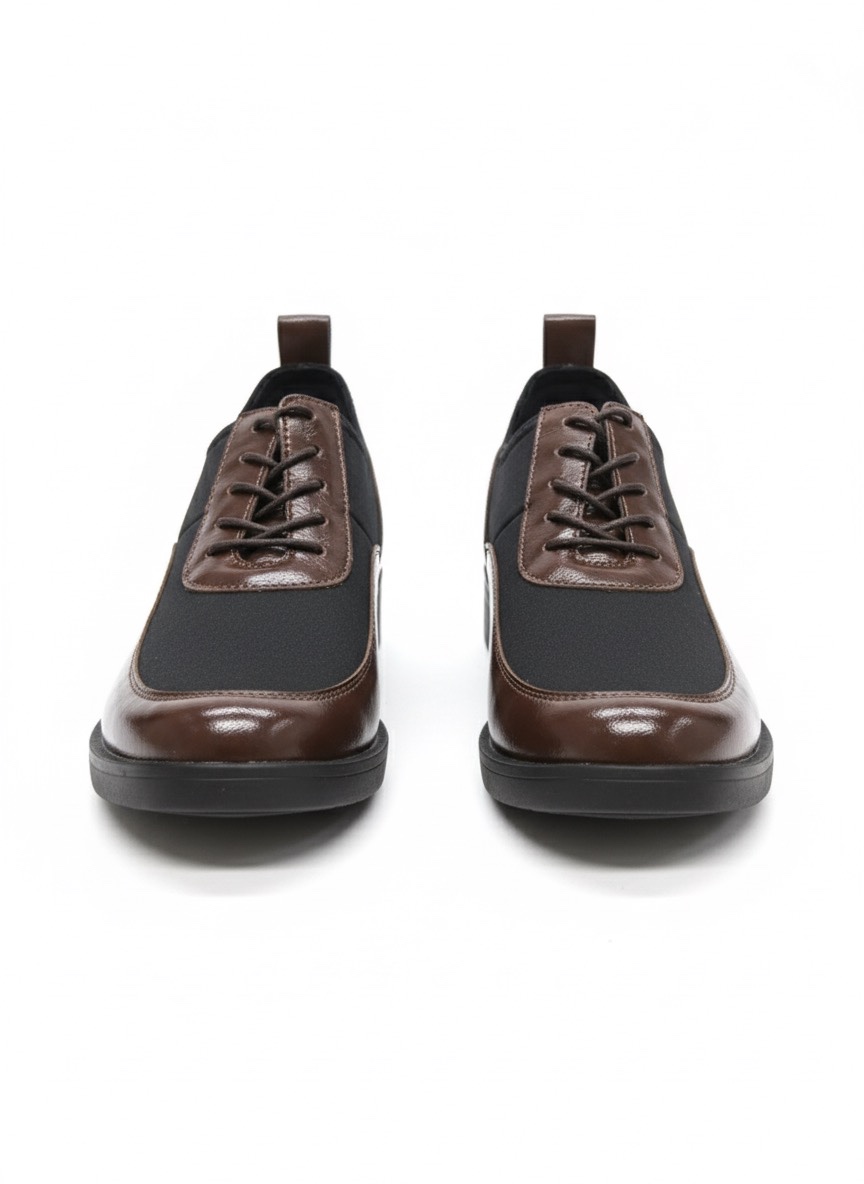 • Kahverengi Siyah Bağcıklı Oxford Ayakkabı – Parlak Deri ve Esnek Kumaş | MOD105