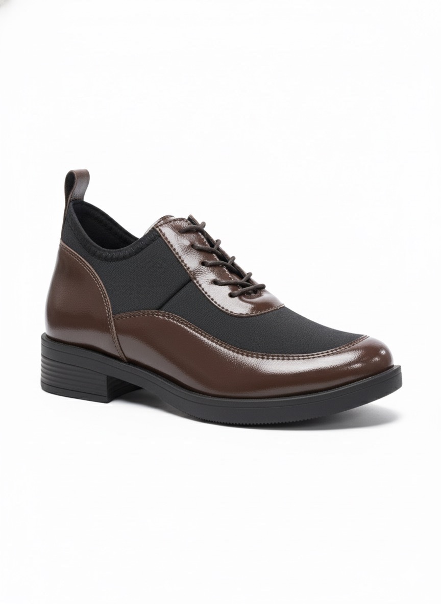 Kahverengi Siyah Bağcıklı Oxford Ayakkabı – Parlak Deri ve Esnek Kumaş | MOD105