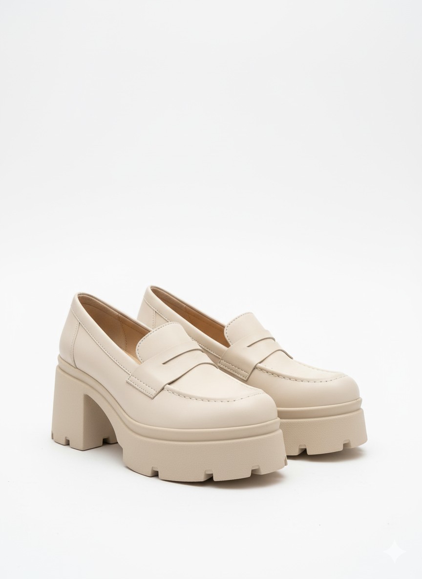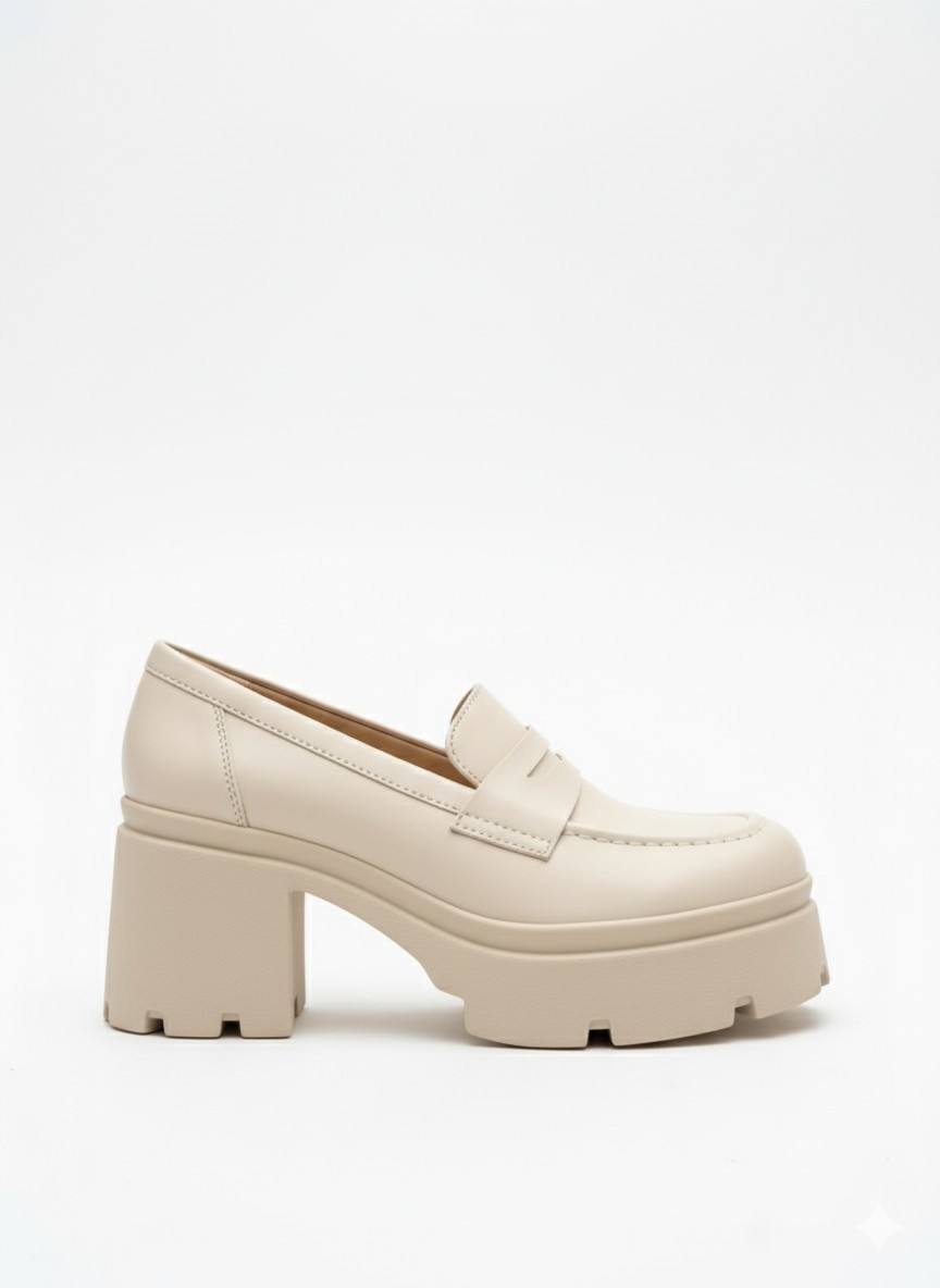 Klasik Kalın Tabanlı Bej Topuklu Loafer 849₺ jona