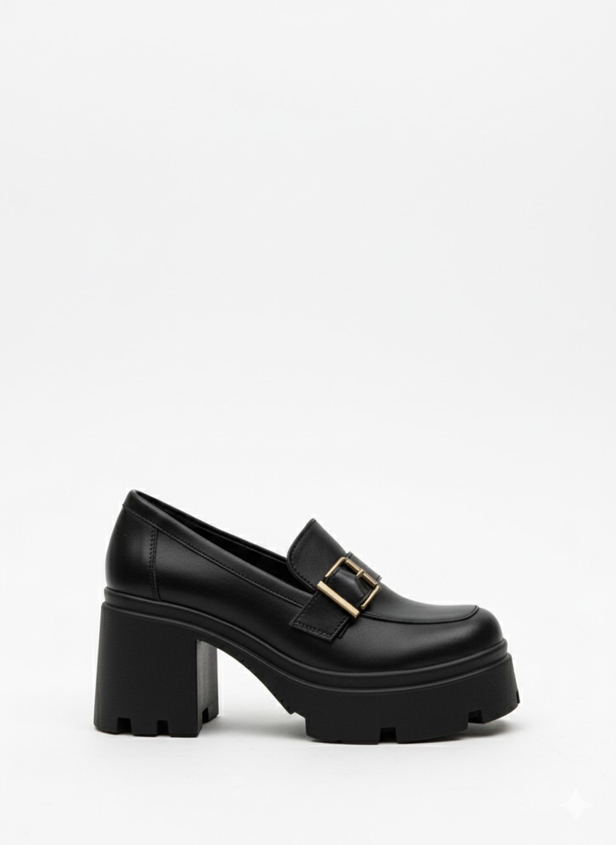 • Klasik Kalın Tabanlı Siyah Tokalı Topuklu Loafer 849₺ loa