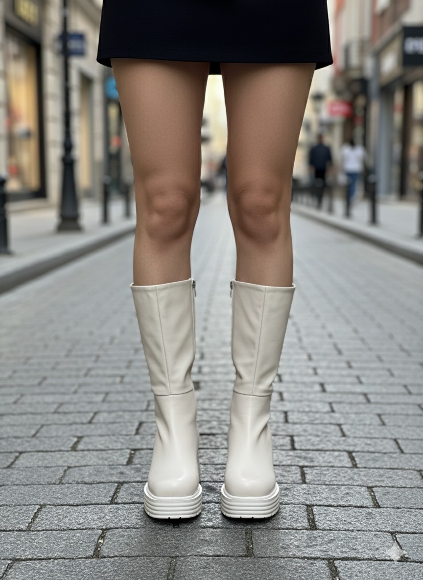 Krem Rengi Yüksek Konçlu Kalın Tabanlı Çizme Bot 999₺| TSL812
