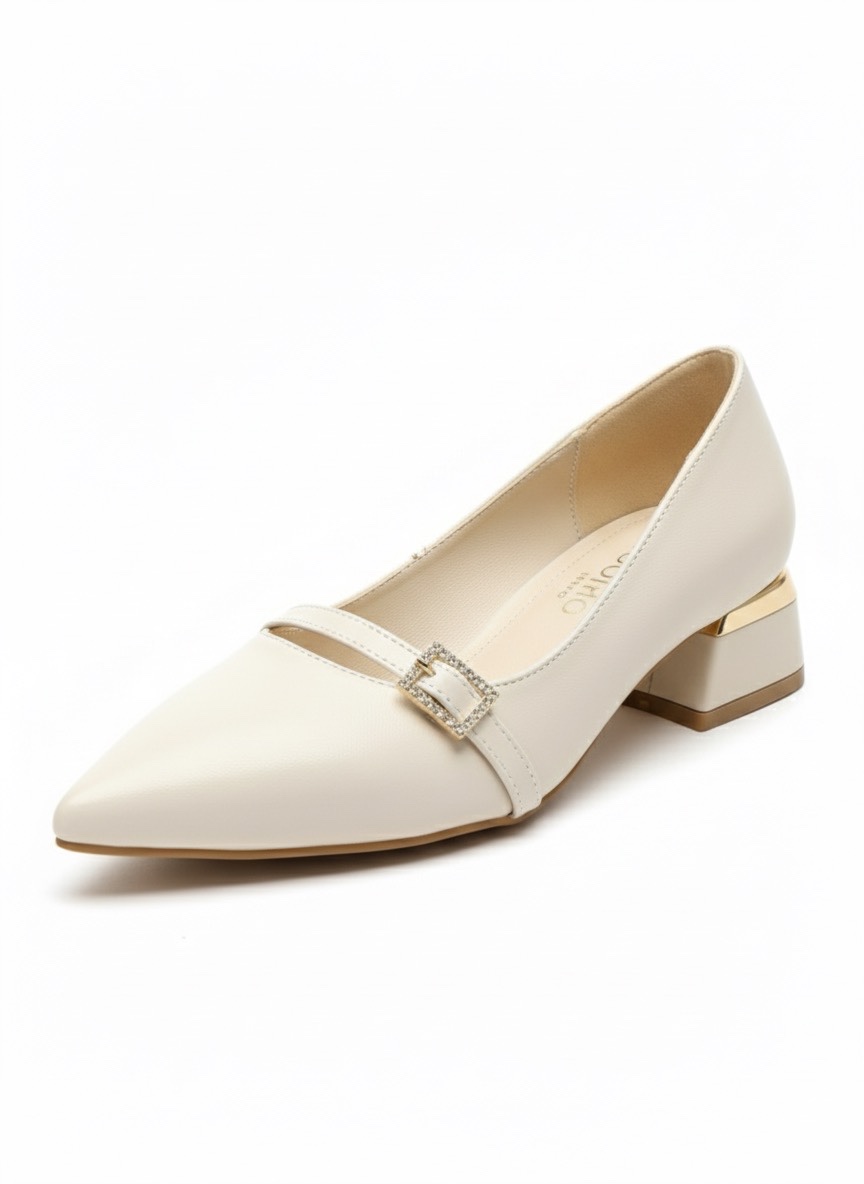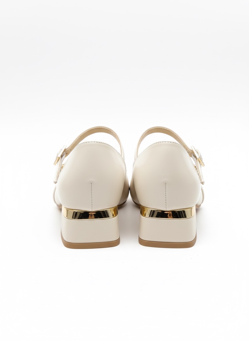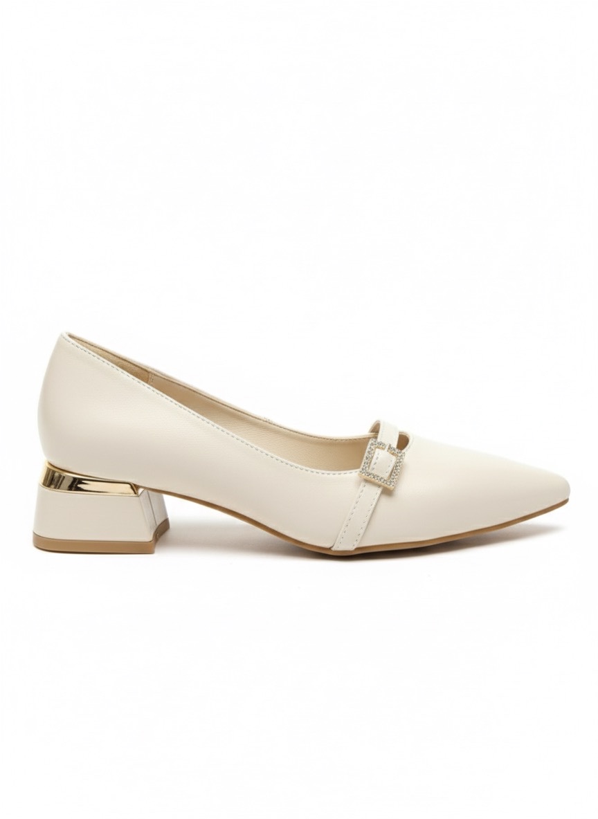 Krem Sivri Burun Tokalı Metal Topuklu Ayakkabı 849₺ | STM225
