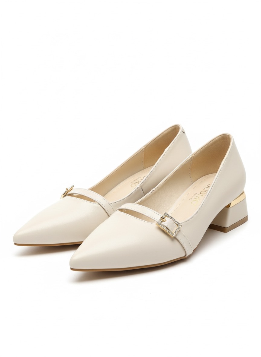 • Krem Sivri Burun Tokalı Metal Topuklu Ayakkabı 849₺ | STM225