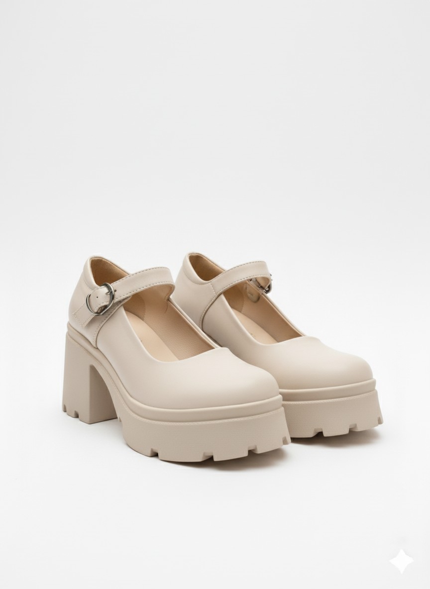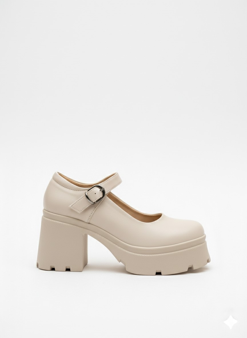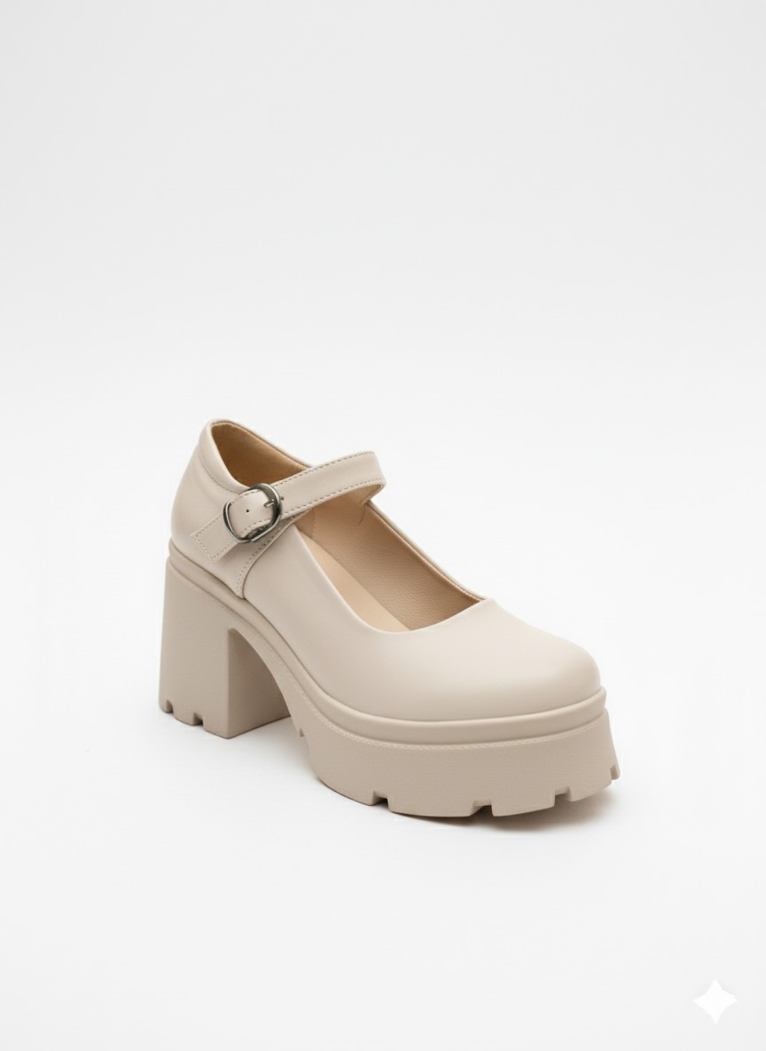 Detaylar: Bu Mary Jane model platform topuklu ayakkabı, modern tasarımı ve konforu bir araya getiriyor. Kalın ve tırtıklı platform topuk yapısı, gün boyu rahat bir kullanım sağlarken, ayarlanabilir toka detayı ise ayağınıza tam oturur. Yuvarlak burun ve zarif bej rengi, ayakkabıyı hem şık hem de spor kombinlerinize kolayca adapte etmenize olanak tanır. Hafif yapısı ve dayanıklı malzemesiyle uzun ömürlü bir kullanım sunar.