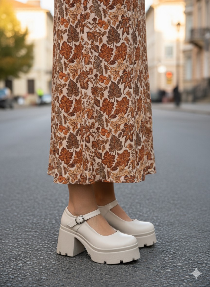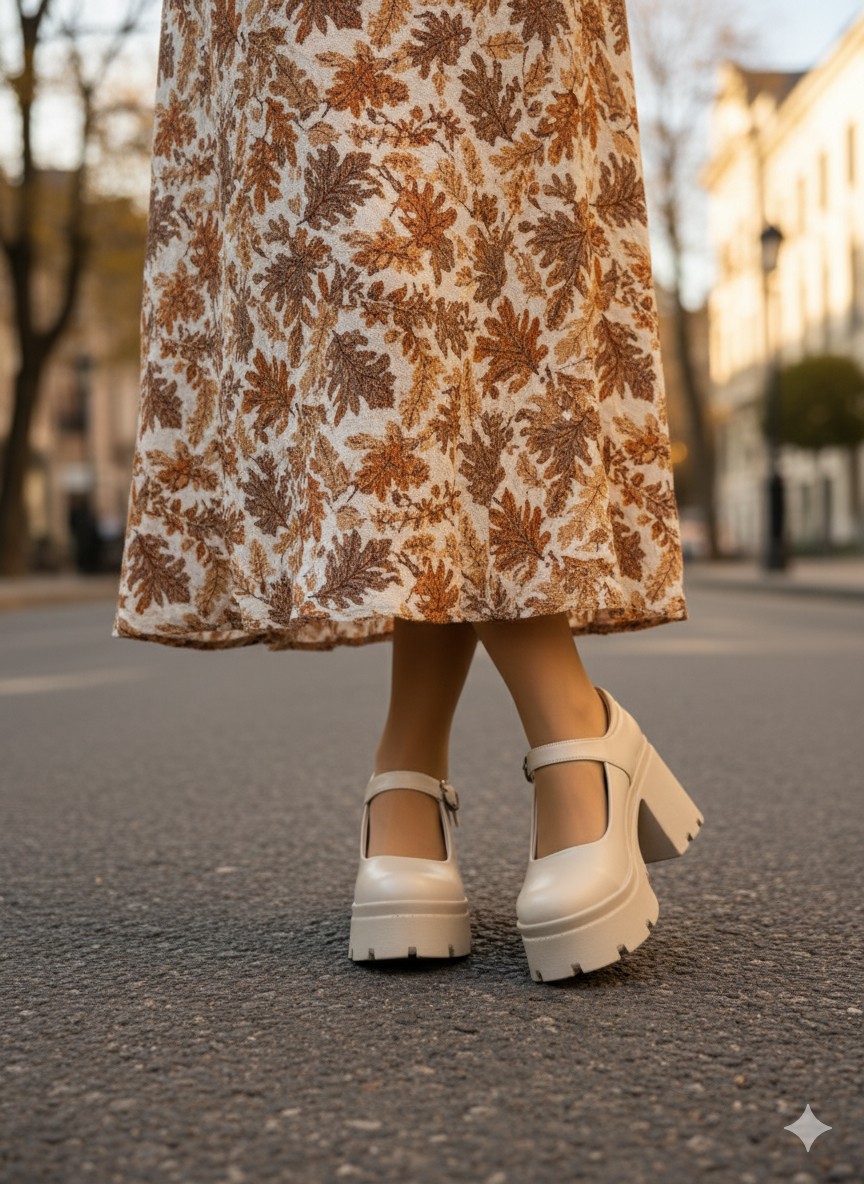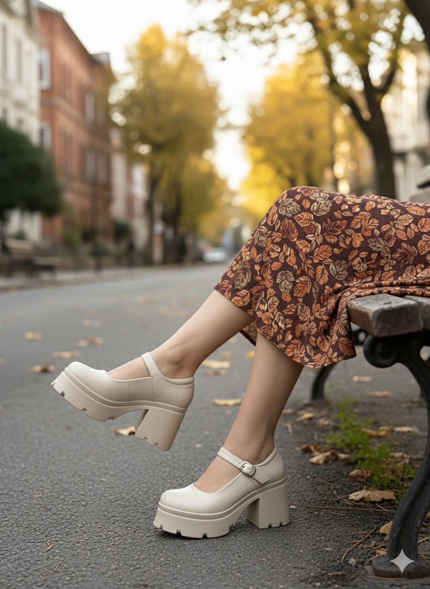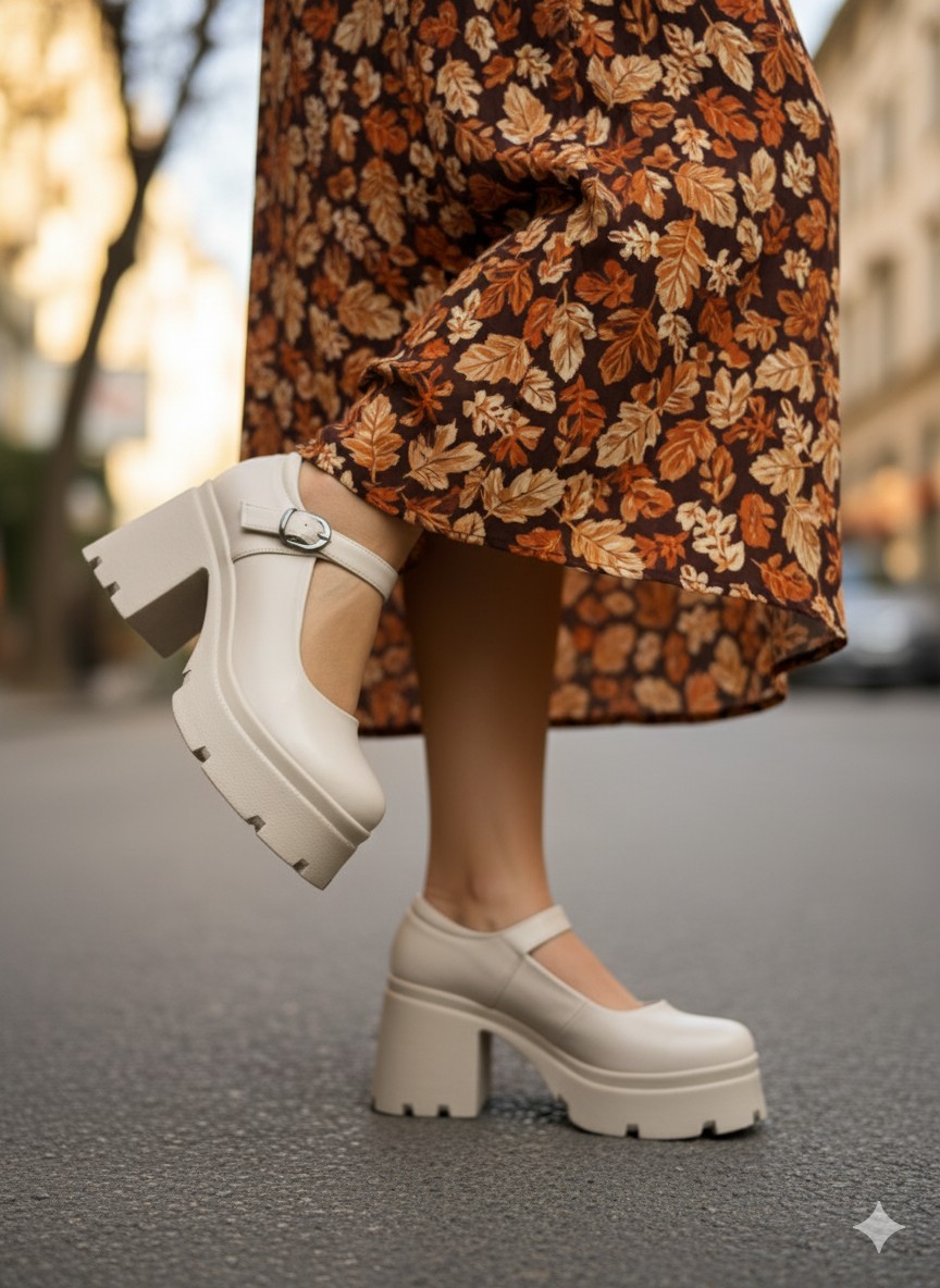 Detaylar: Bu Mary Jane model platform topuklu ayakkabı, modern tasarımı ve konforu bir araya getiriyor. Kalın ve tırtıklı platform topuk yapısı, gün boyu rahat bir kullanım sağlarken, ayarlanabilir toka detayı ise ayağınıza tam oturur. Yuvarlak burun ve zarif bej rengi, ayakkabıyı hem şık hem de spor kombinlerinize kolayca adapte etmenize olanak tanır. Hafif yapısı ve dayanıklı malzemesiyle uzun ömürlü bir kullanım sunar.