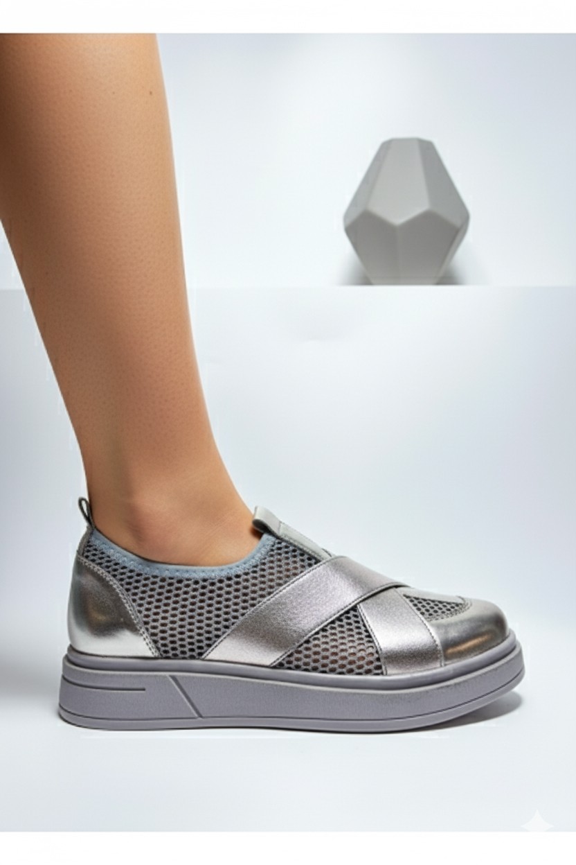 Metalik Gri File Detaylı Platform Kadın Spor Ayakkabı merda