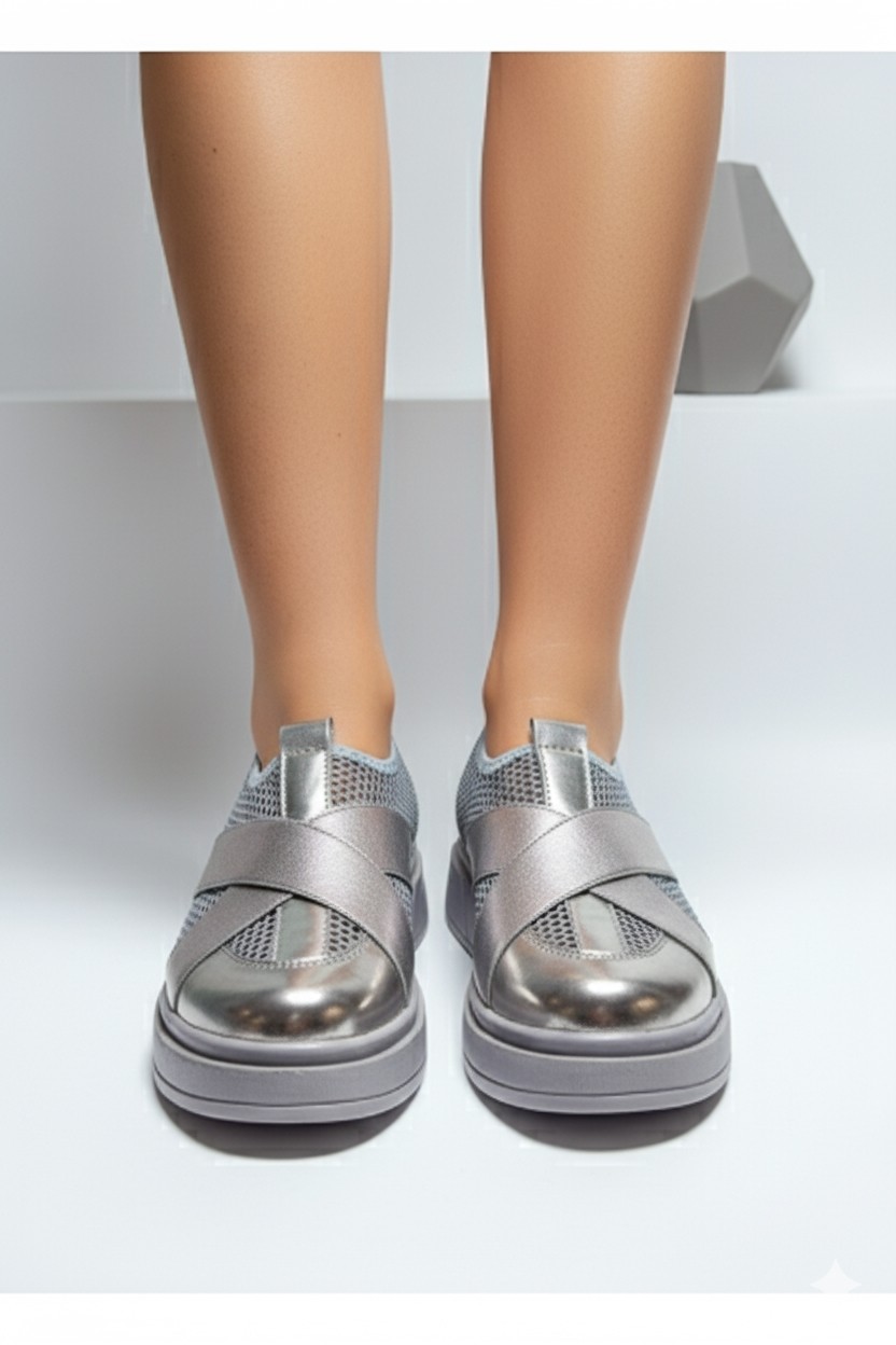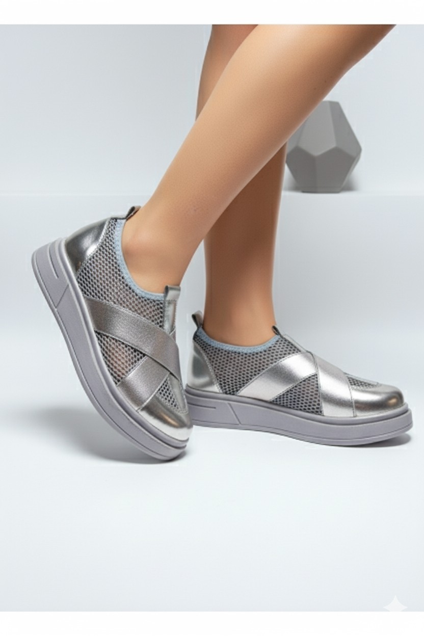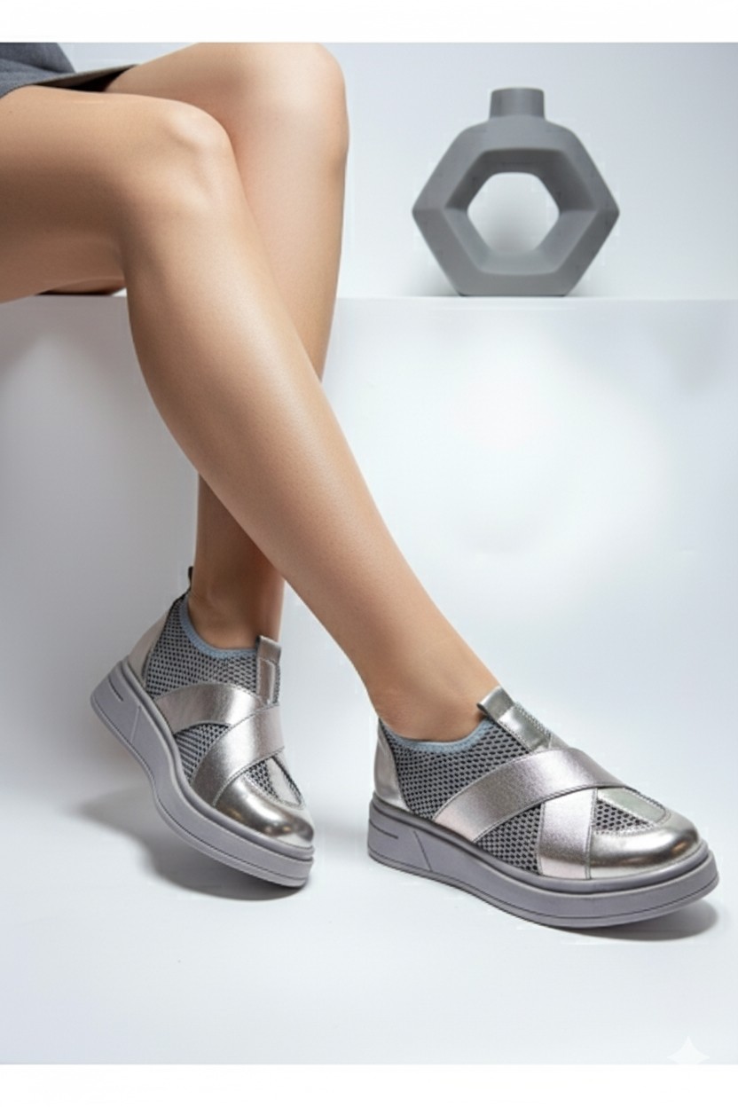 • Metalik Gri File Detaylı Platform Kadın Spor Ayakkabı merda