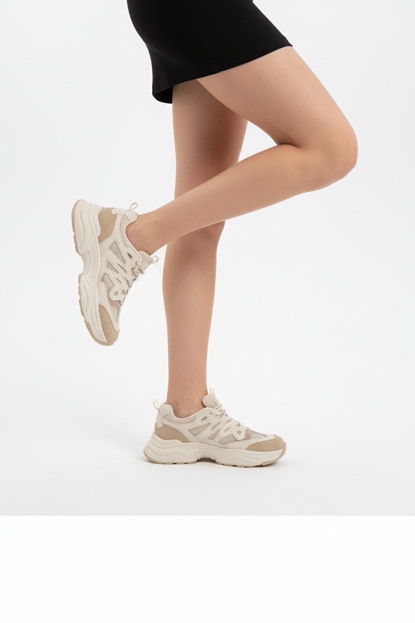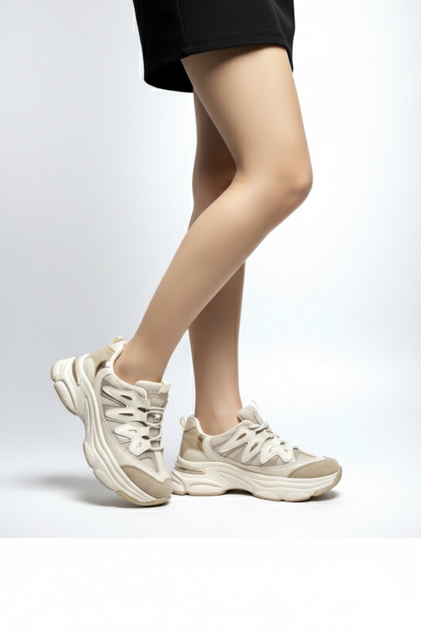 Modern Şık Bej Süet Spor Ayakkabı teko