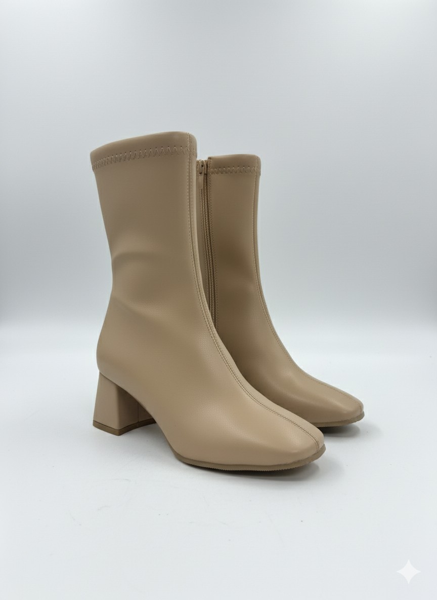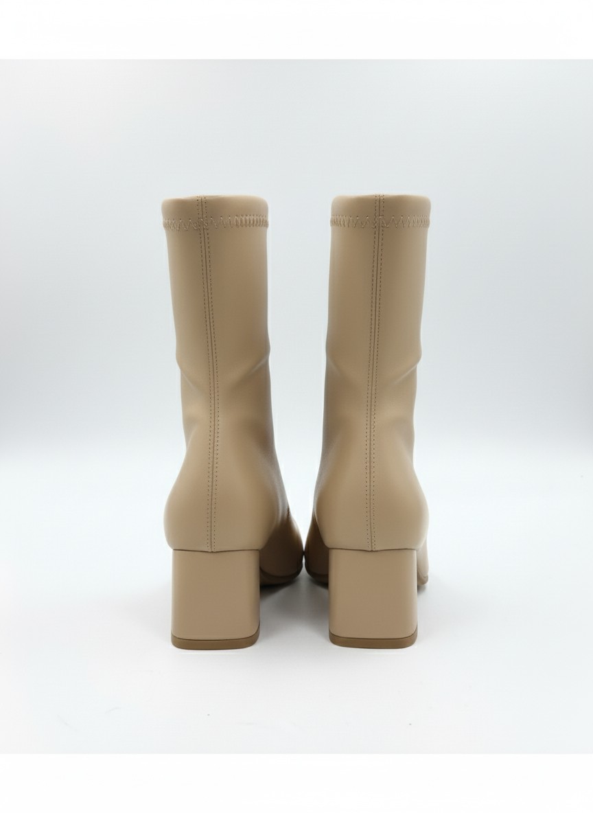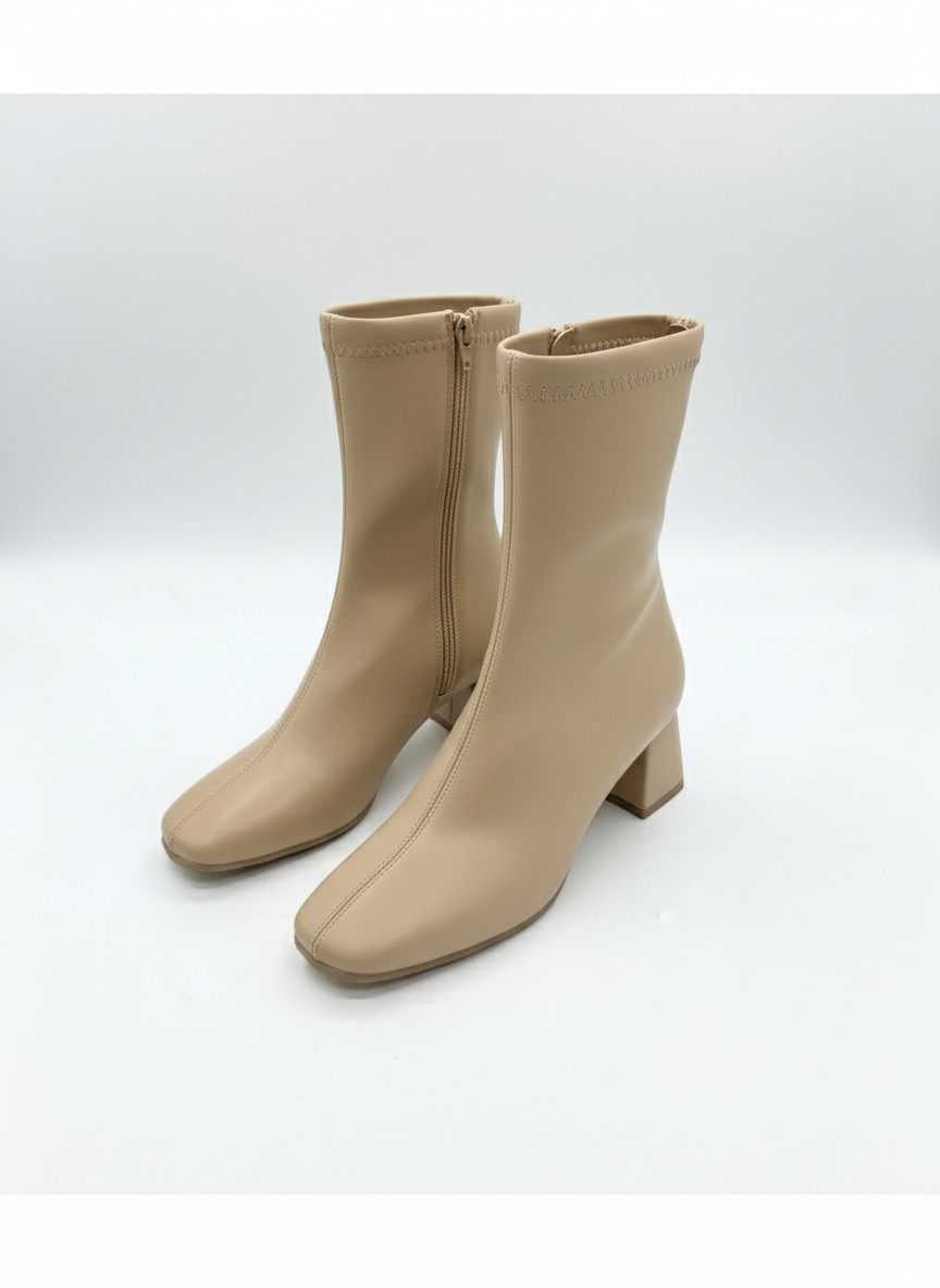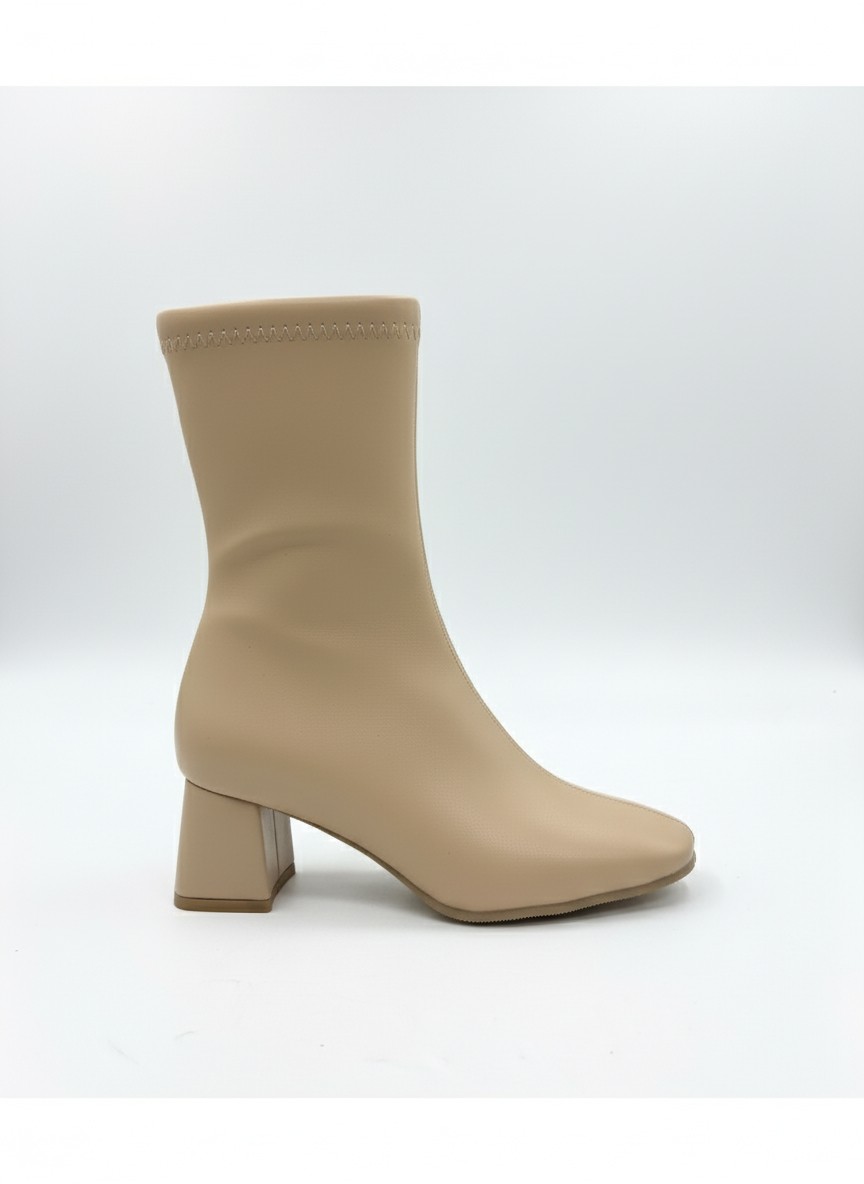 Nude Esnek Çorap Bot Kare Burun Kalın Topuk 999₺| ECB345