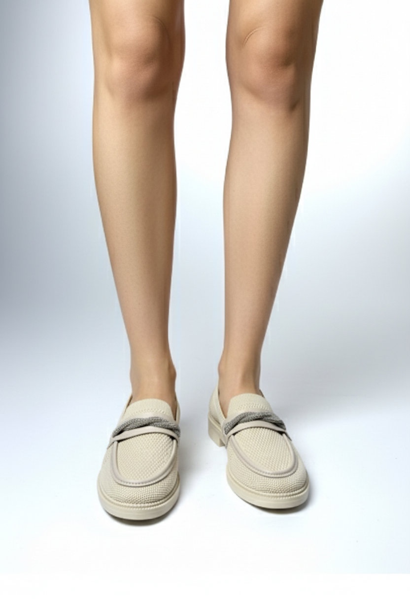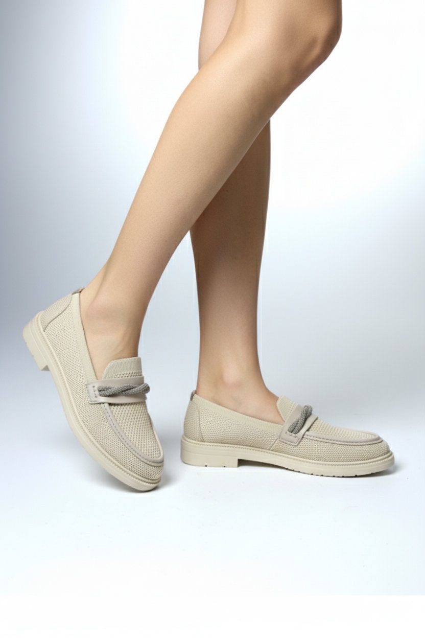 Bej Taş Detaylı Fileli Loafer gate