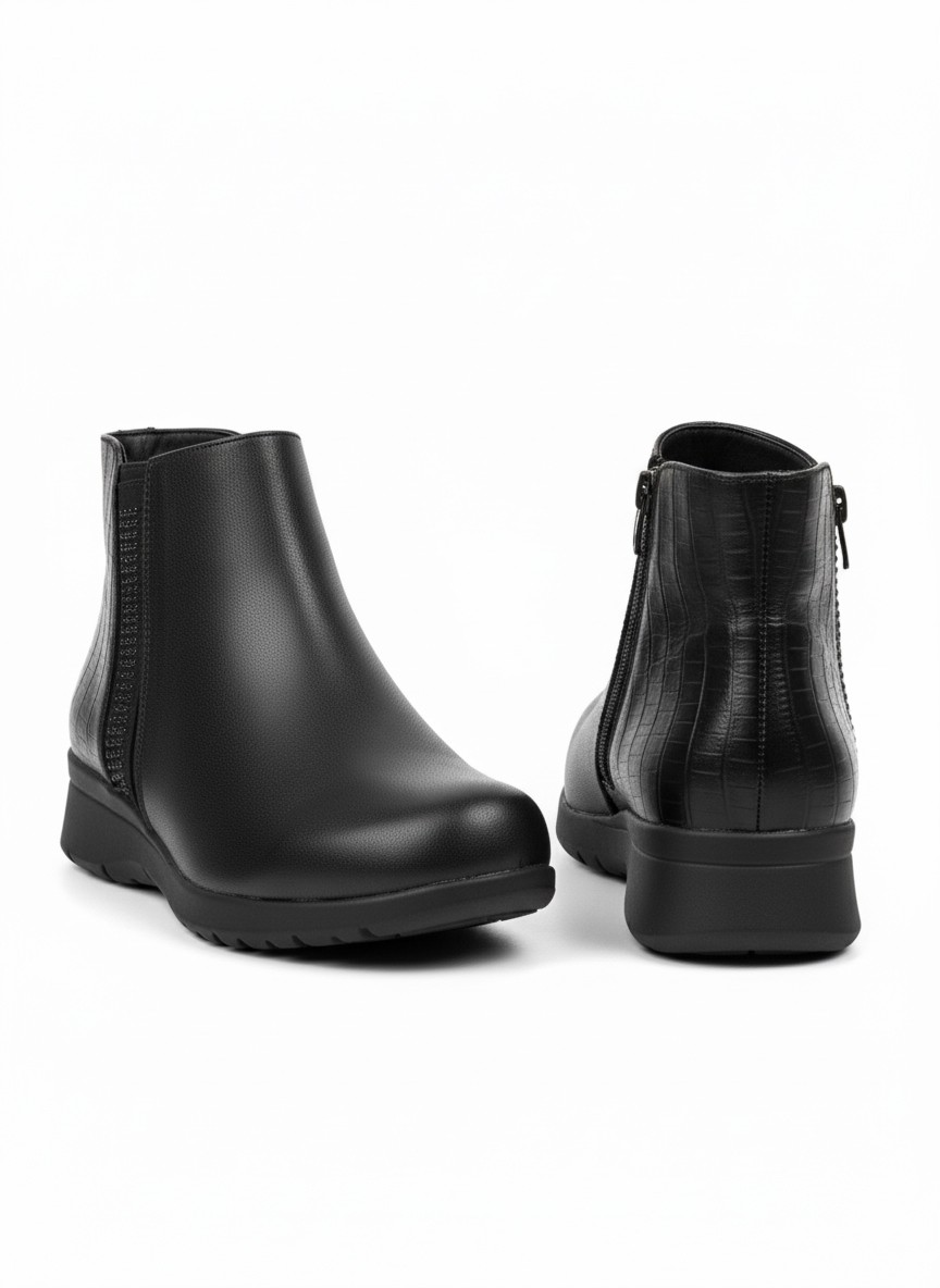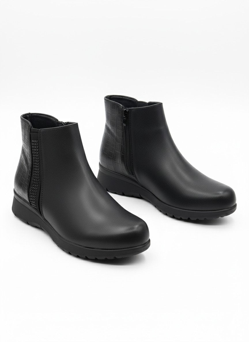 • Siyah Kroko ve Zımba Detaylı Rahat Taban Bot 690₺ | KRZ661