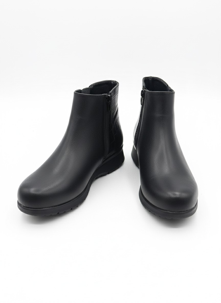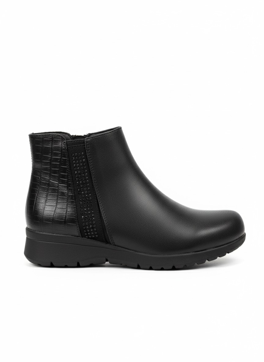 OUTLET Siyah Kroko ve Zımba Detaylı Rahat Taban Bot 690₺ | KRZ661