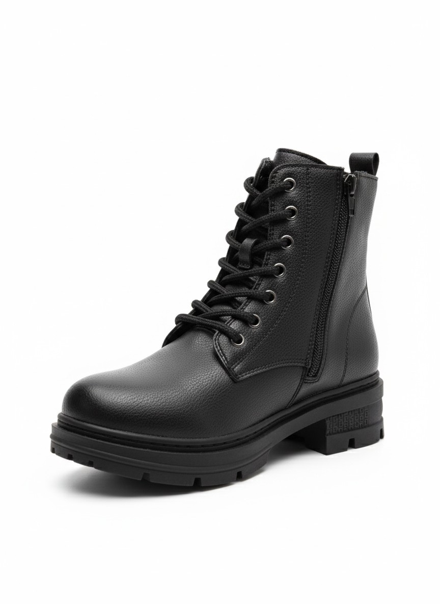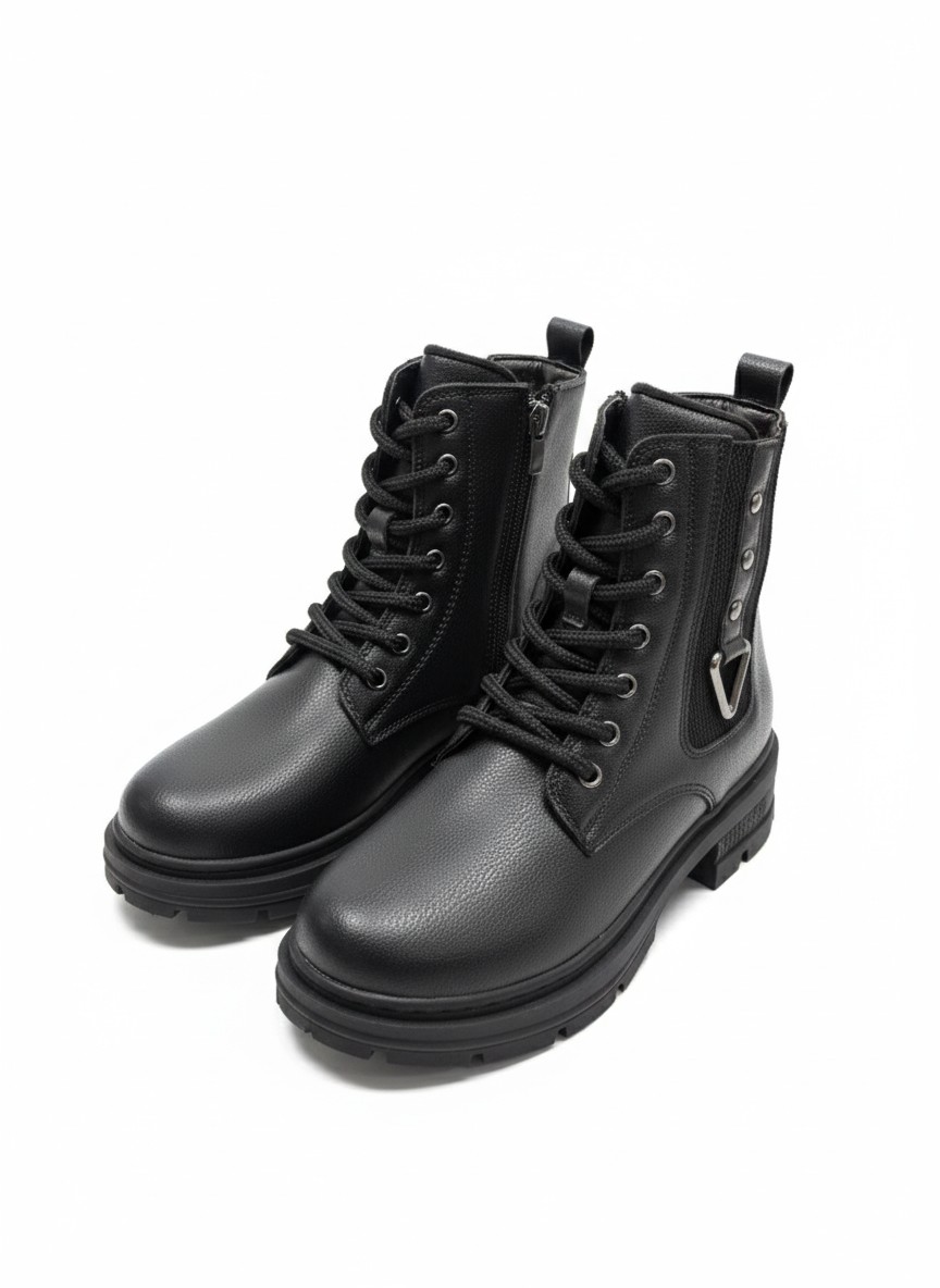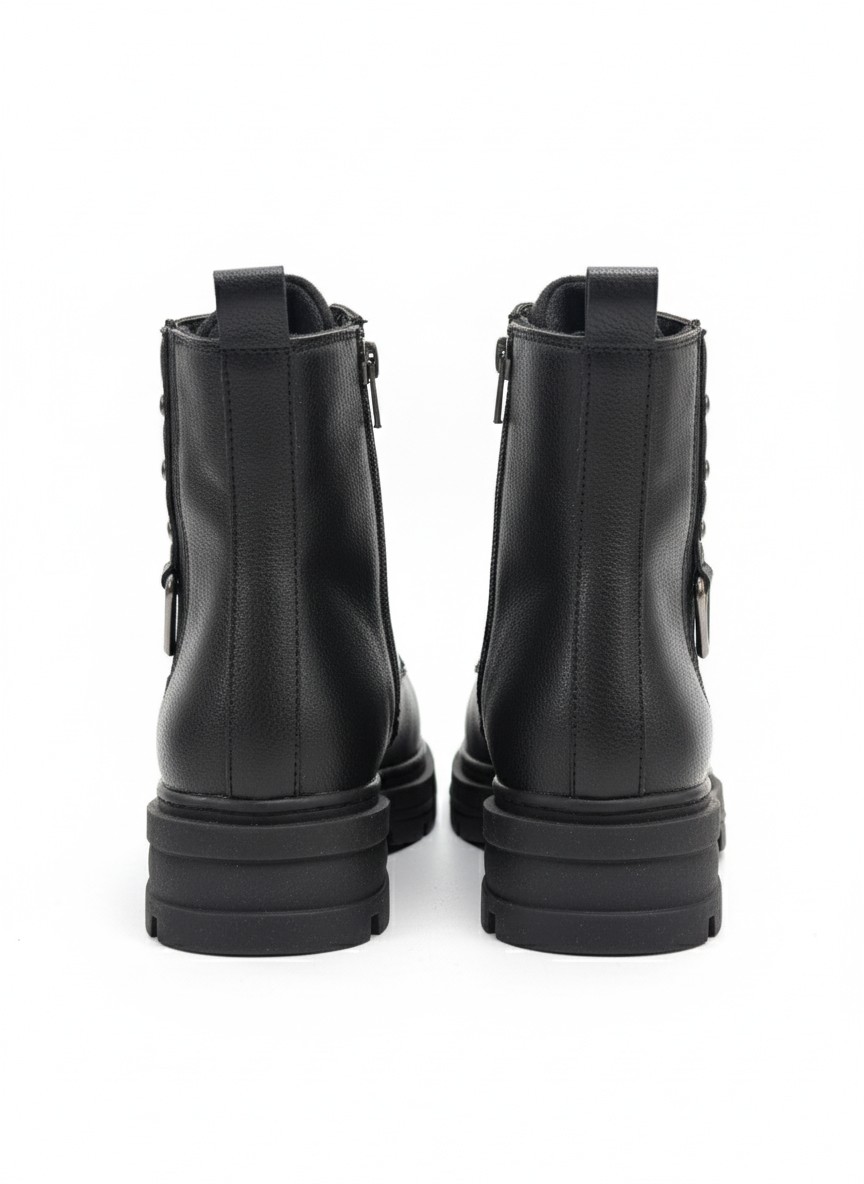 Bu metal detaylı combat botlar, gardırobunuzdaki her parçaya güçlü ve asi bir hava katacaktır: