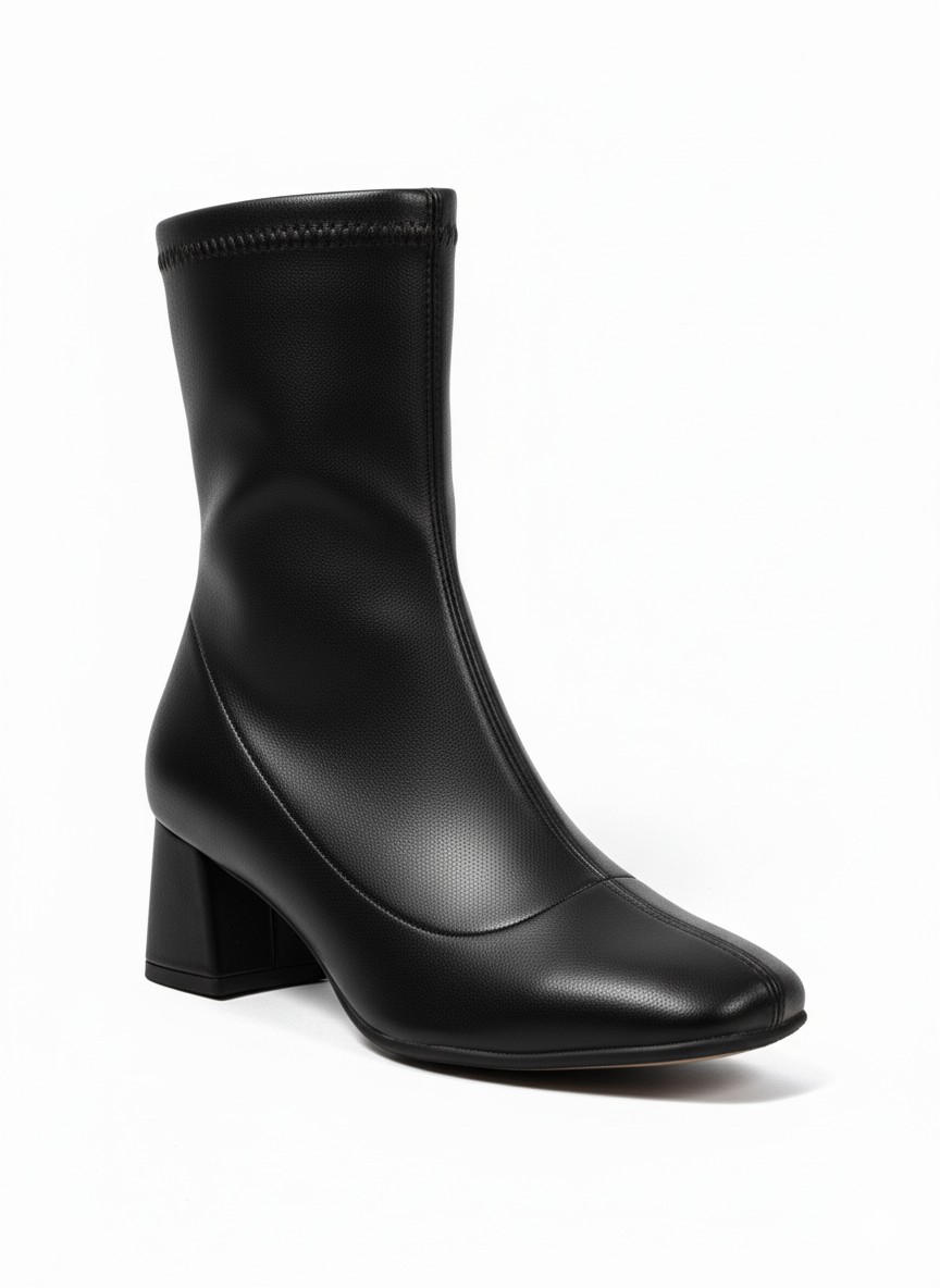 Siyah Esnek Bot Kare Burun Kalın Topuk Kadın Günlük Bot 999₺ | SCB298