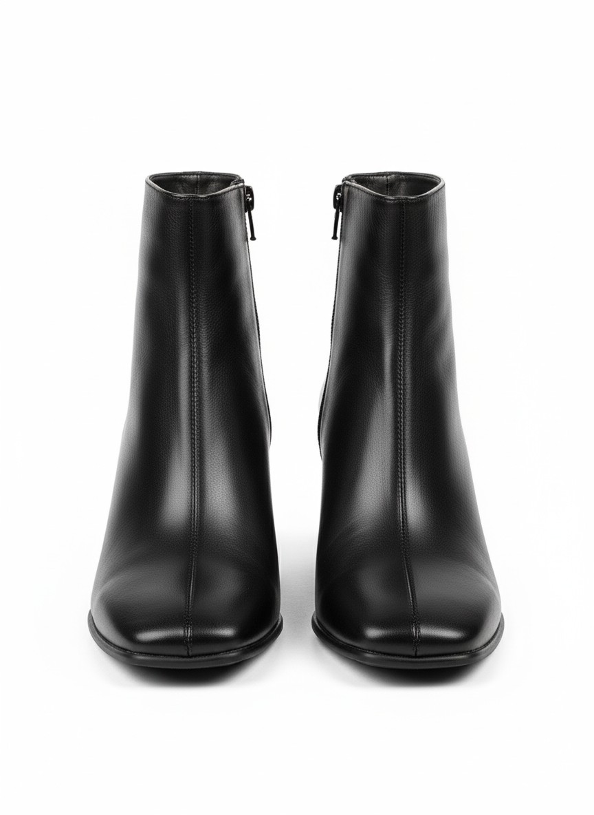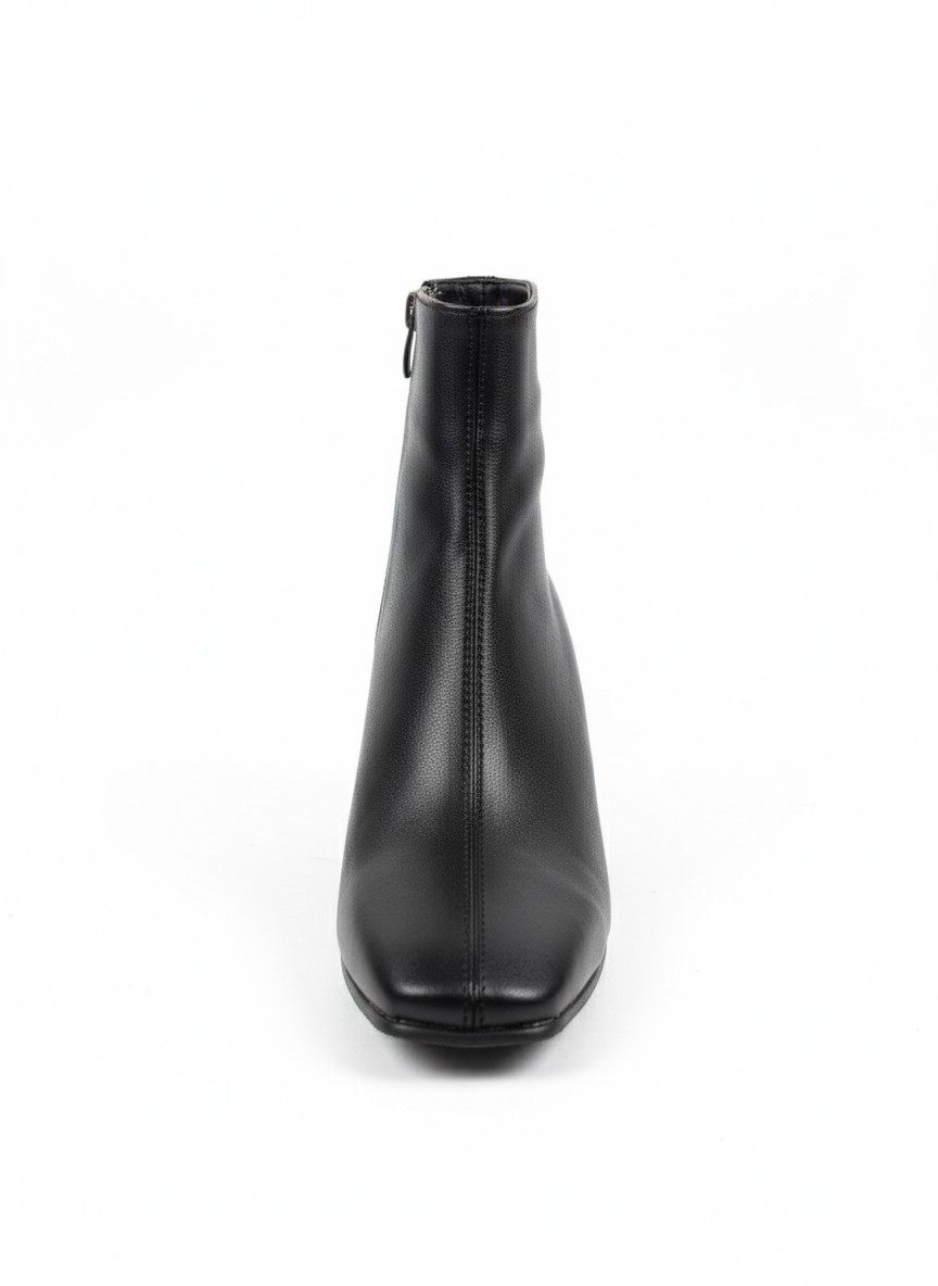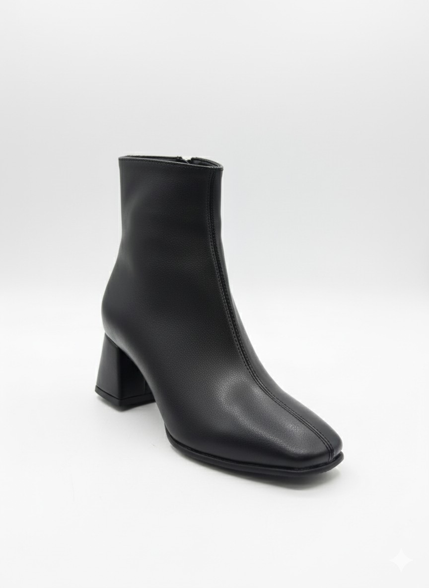 Bu siyah kare burunlu botlar, klasik duruşu ve modern detaylarıyla her stile uyum sağlar: