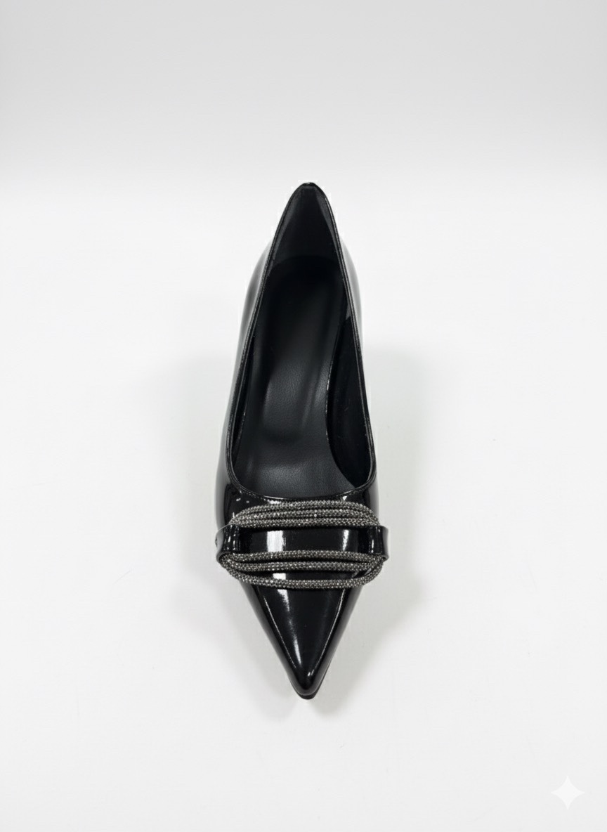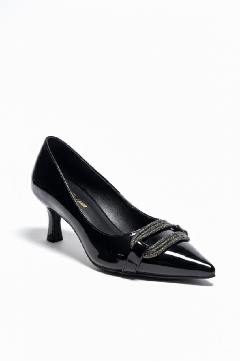 Siyah Parlak Taş Detaylı Klasik Topuklu Ayakkabı Zaza 599₺