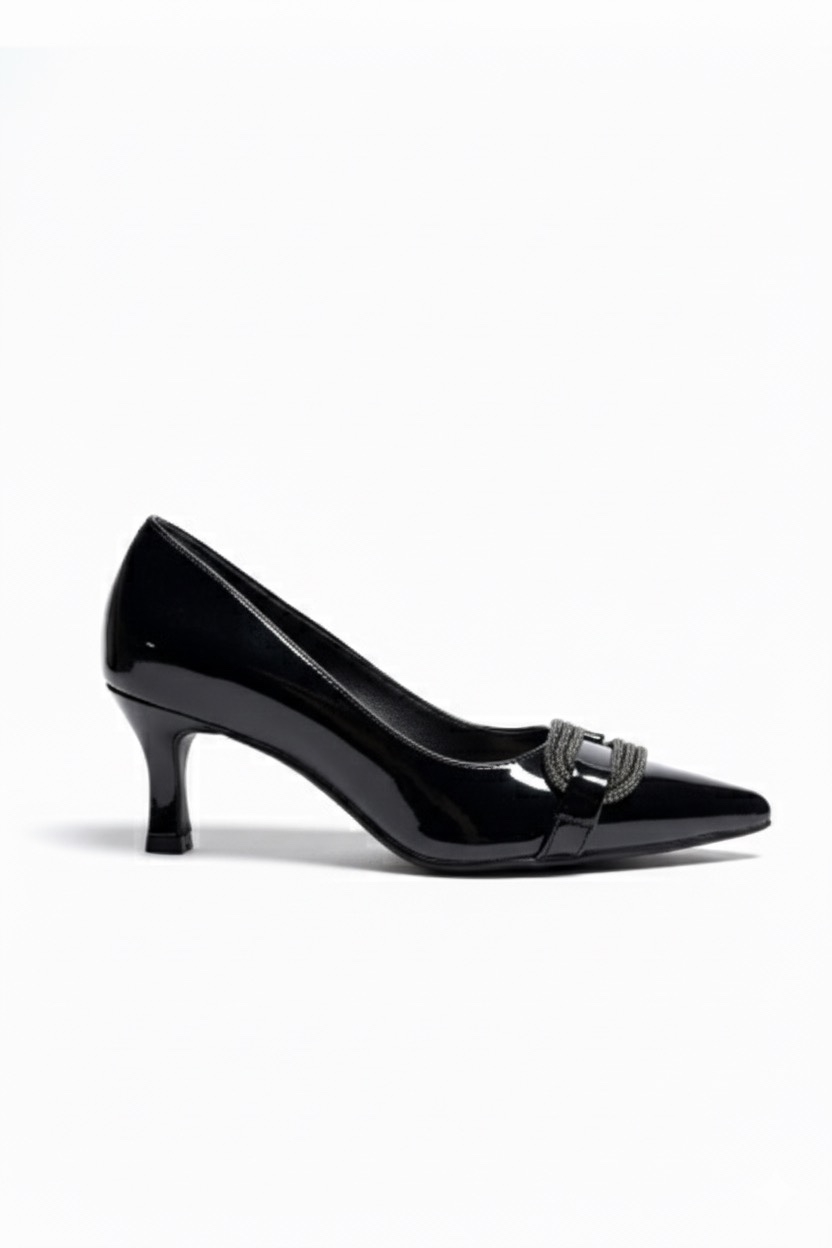 • Siyah Parlak Taş Detaylı Klasik Topuklu Ayakkabı Zaza 599₺