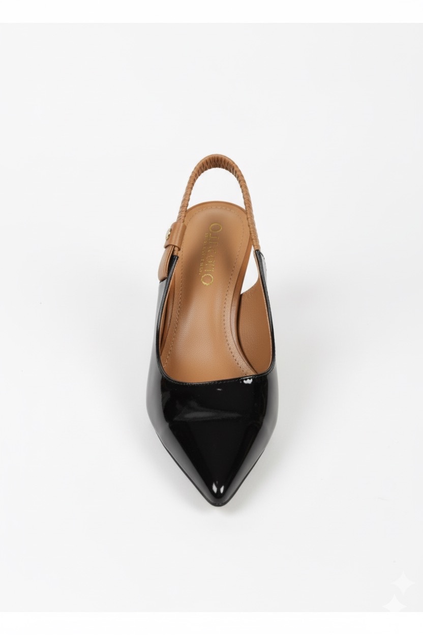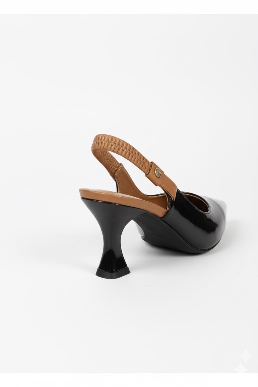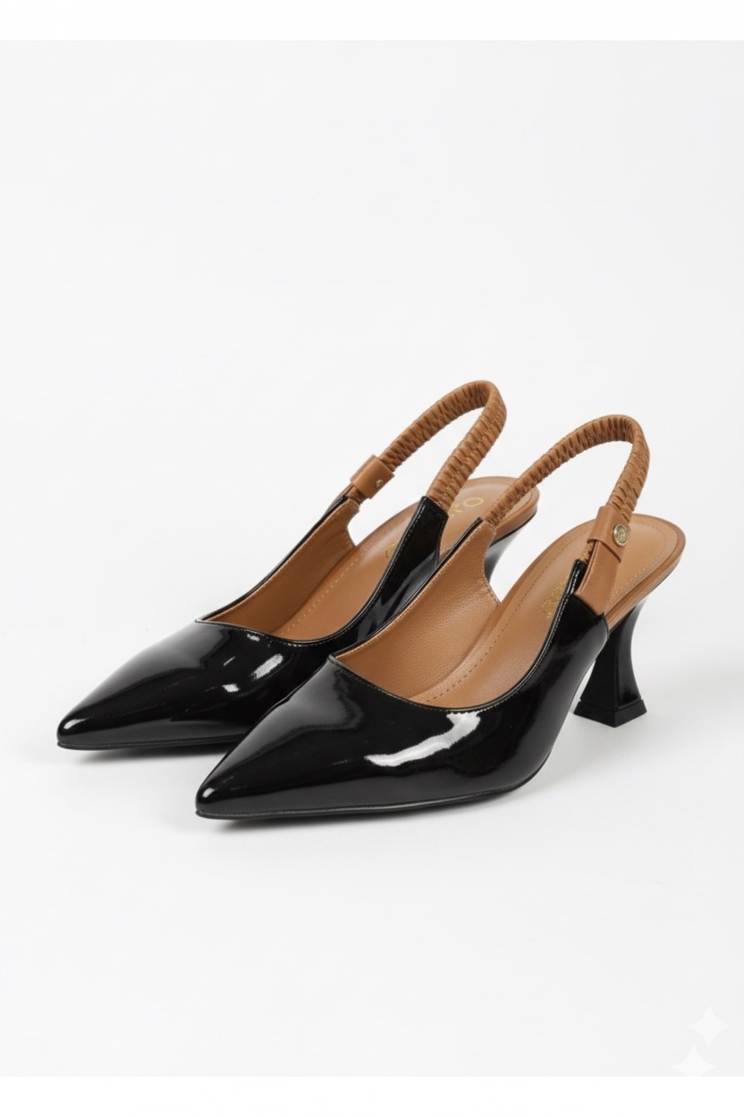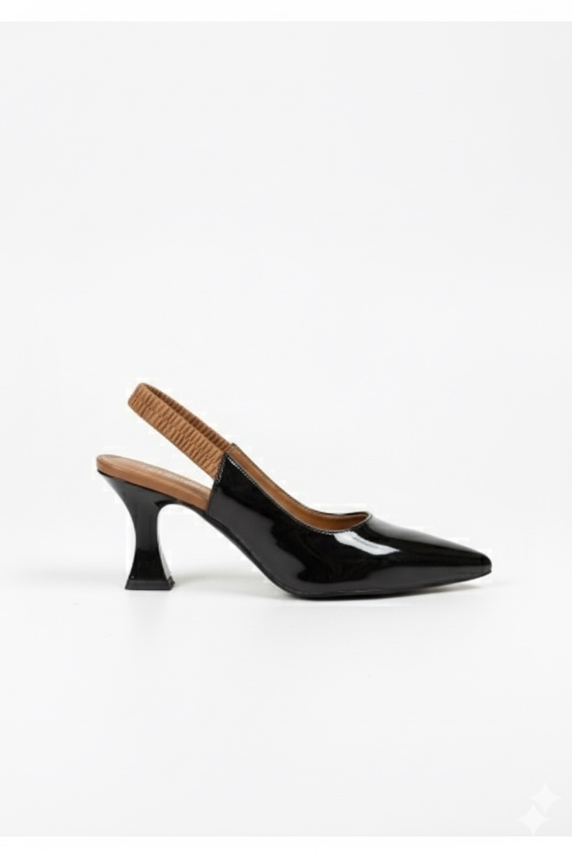 • Siyah Rugan Lastikli Kısa Topuklu Ayakkabı - DENOR 599₺