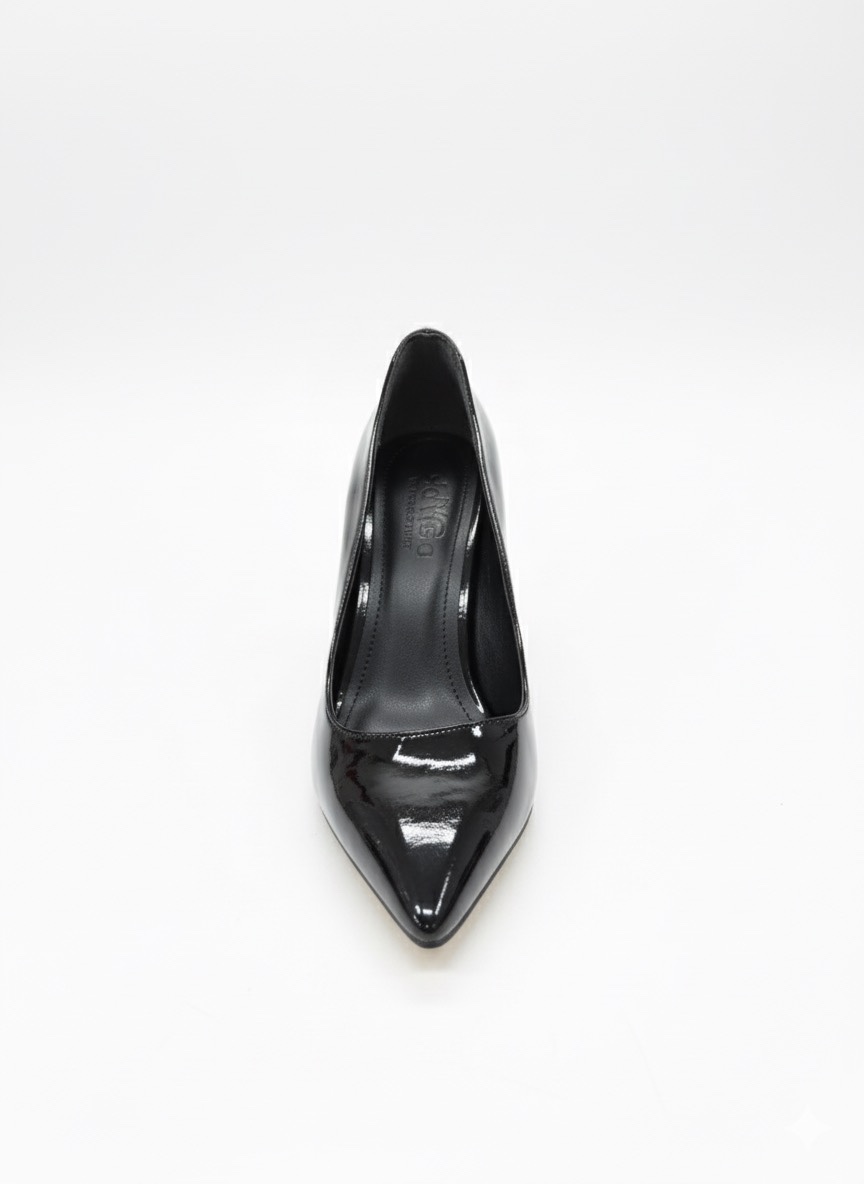 Özetle: Parlak rugan yüzeyi ve modern kadeh topuğu ile bu siyah sivri burunlu ayakkabı, konforunuzdan ödün vermeden en şık görünümünüze ulaşmanızı sağlar.