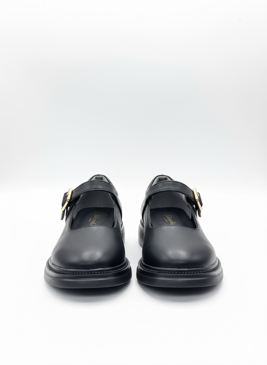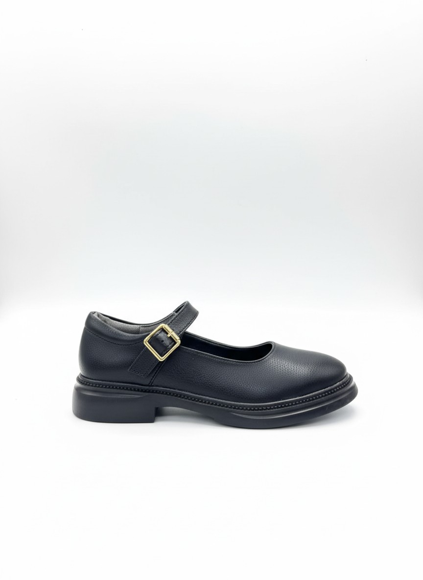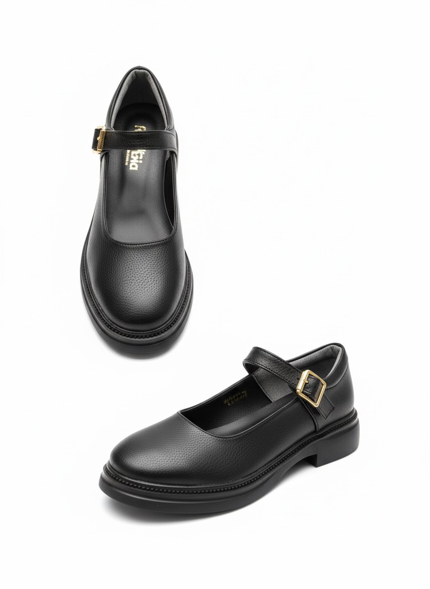 • Klasik Mary Jane Silüeti: Ayak üstünden geçen tek bant ve toka detayı.