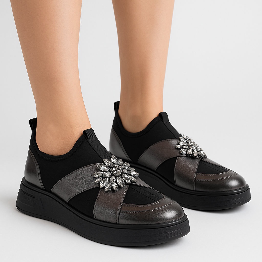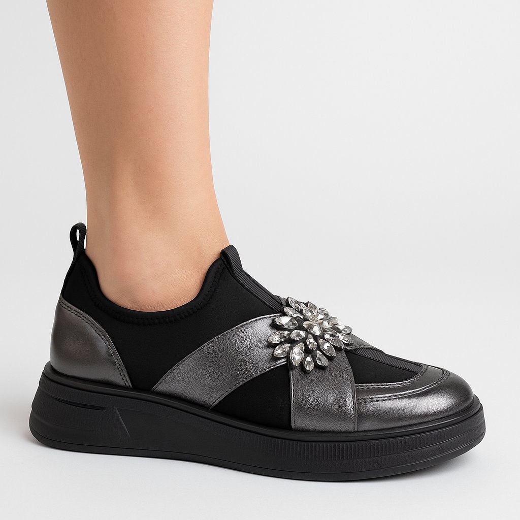 • Siyah ve Gümüş Taş Tokalı Platform Kadın Spor Ayakkabı