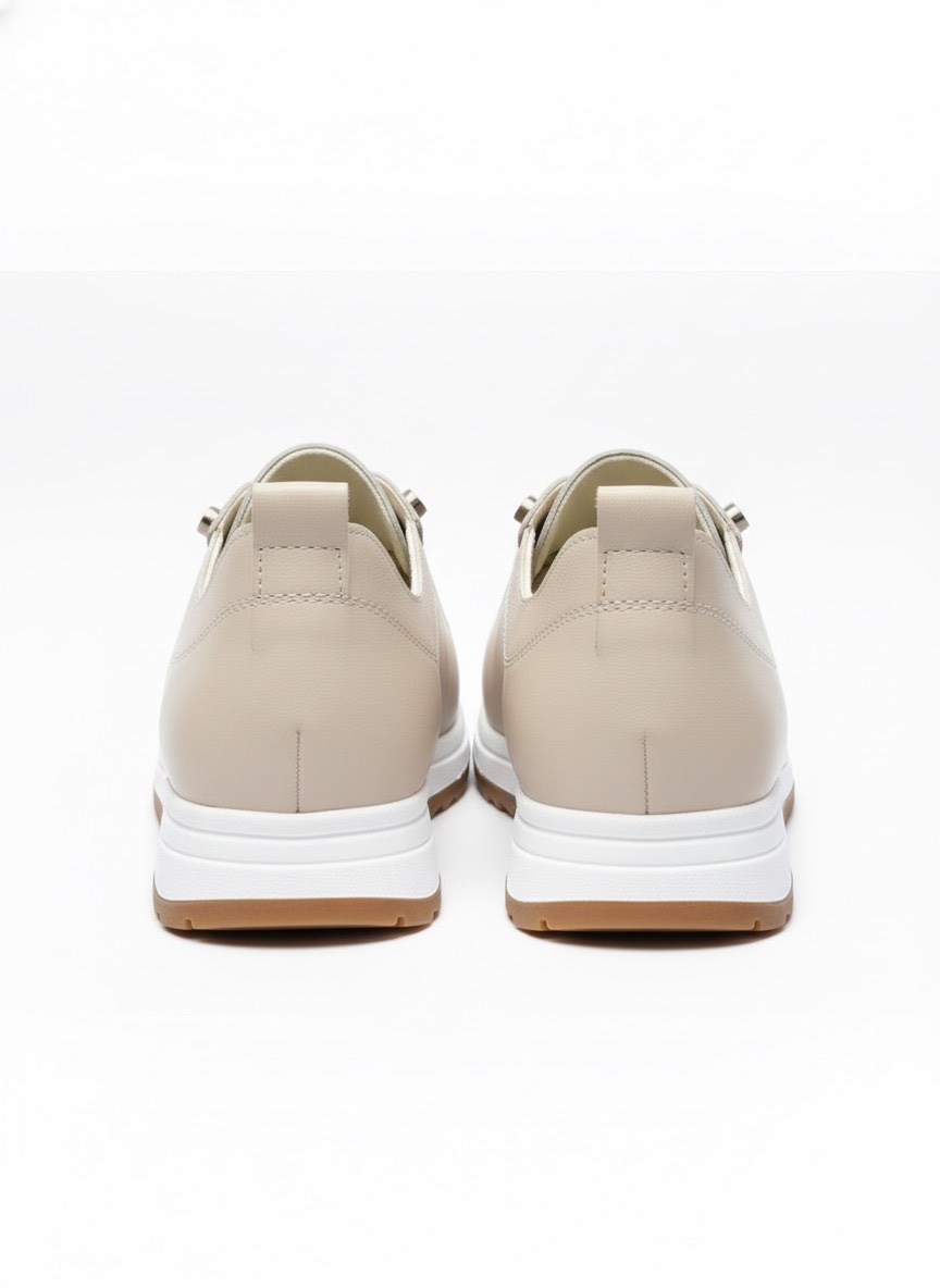Bu bej suni deri sneaker'lar, nötr rengi ve modern tasarımı sayesinde jean pantolonlar, kapri pantolonlar, midi etekler ve günlük elbiselerle kolayca uyum sağlar. Spor şıklığı zahmetsizce yakalamak için ideal bir seçimdir.