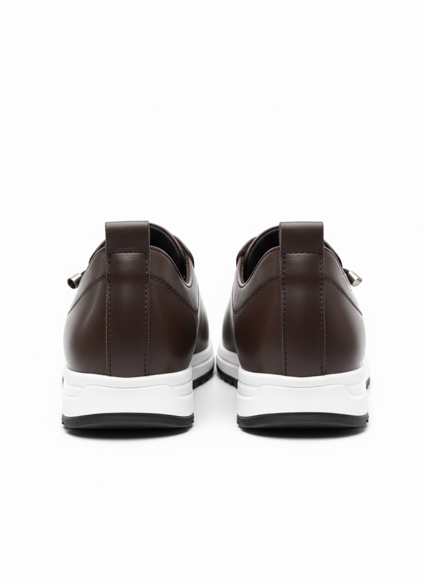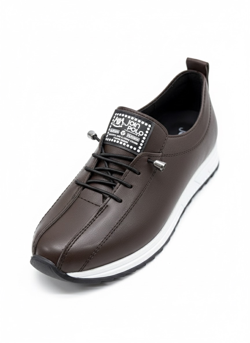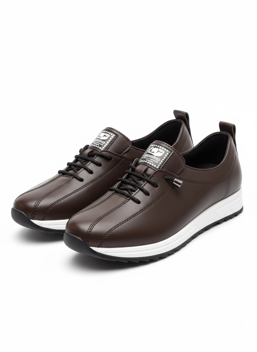 • Vegan Deri Kahverengi Kadın Sneaker 590₺ | Beyaz Tabanlı Suni Deri Günlük Spor Ayakkabı